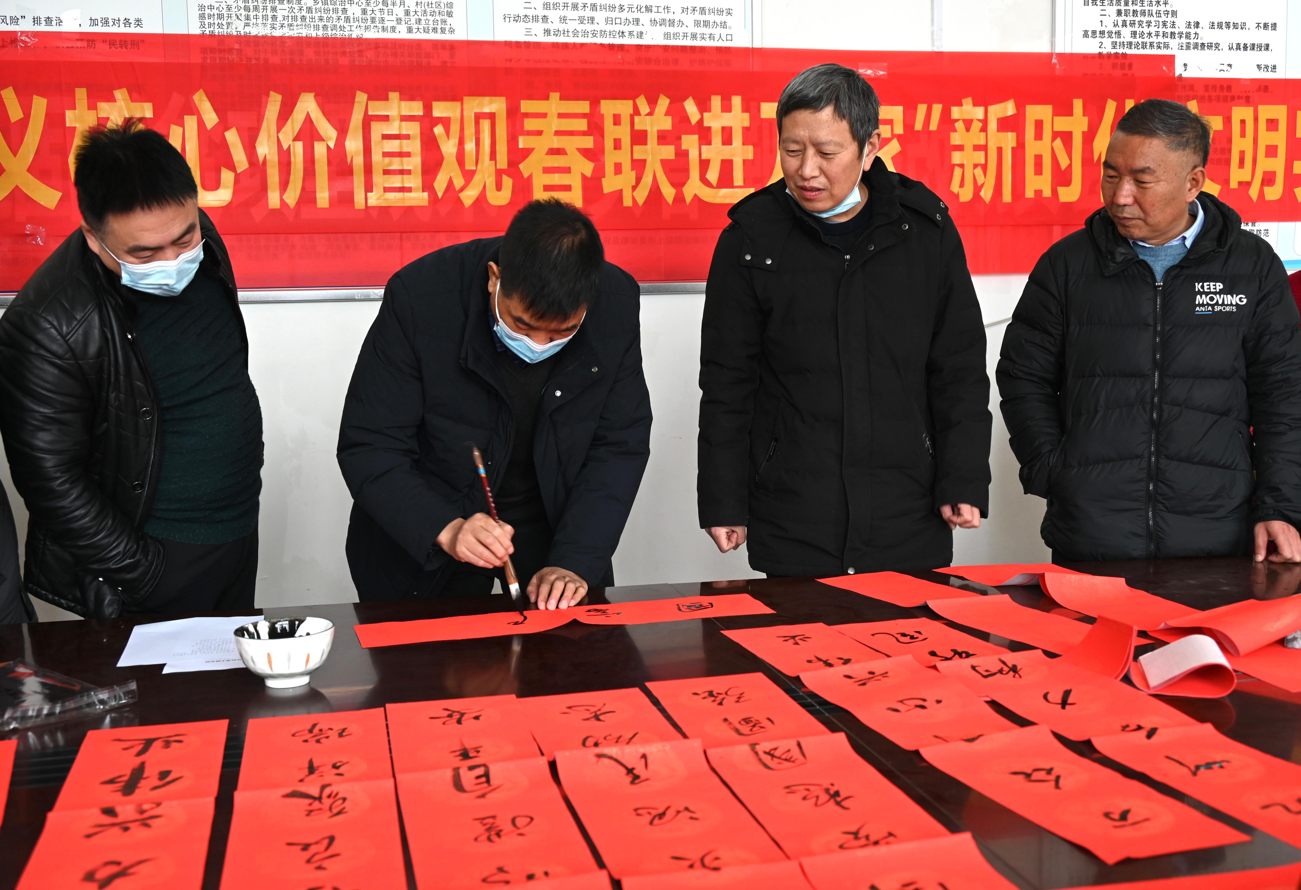 本网讯(文/宣传部 张旭斌)为深入学习宣传贯彻党的二十大精神,不断满足人民群众对文化生活的新需求、新期待,传承中华优秀传统文化,营造喜庆祥和的迎新春节日氛围,1月11日上午,南阳医专副校长张国良、张胜海、郭万周带领学校相关部门负责人和党员志愿者来到方城县广阳镇官坡岭村开展“我们的节日·春节——春联进万家”文明实践志愿服务活动,为广大群众送上新春的问候与祝福。