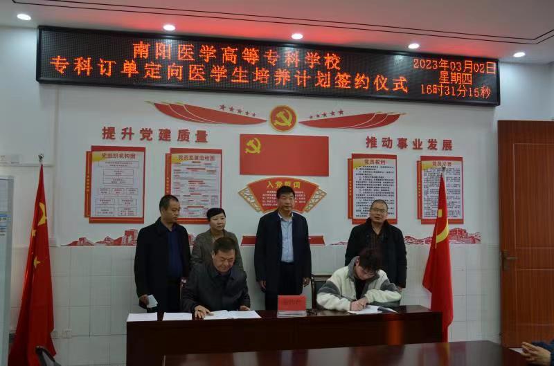 郭万周副校长致辞,他希望同学们努力学习,夯实医学知识,顺利通过学业毕业、全科助培、助理执业医师等考试,更好的适应卫生工作的需求;认真履行协议,遵循签约原则,勇于承担社会责任。郭万周表示,学校将会尽快将签约的协议报送市卫建委、县卫建委等部门,协调落实相关部门义务和责任,为学生持续发展保驾护航,创造更好就业及生活环境。最后,镇平、淅川、内乡、西峡、方城、南召、唐河等七个县签约学生代表依次上台签订了协议。