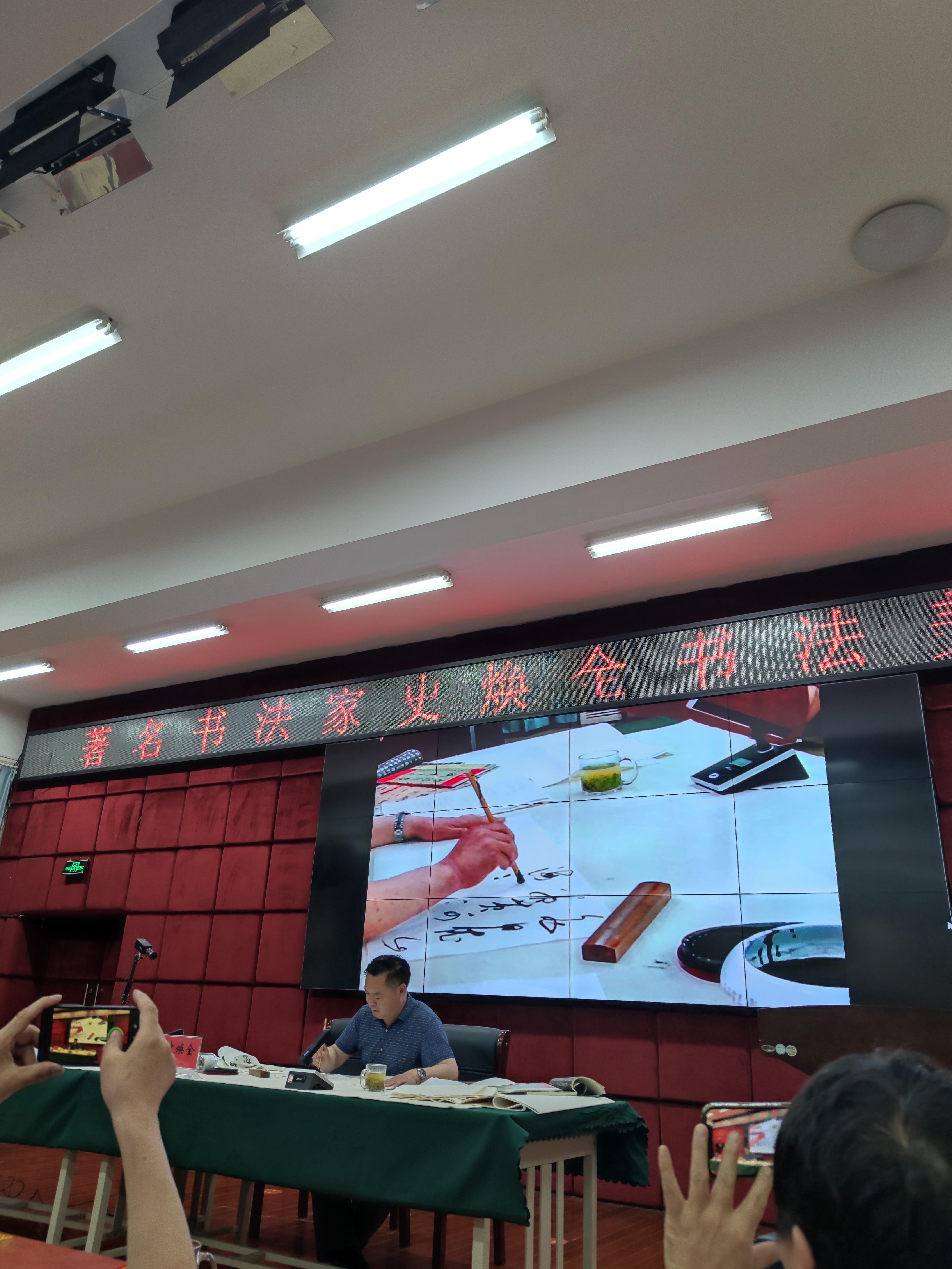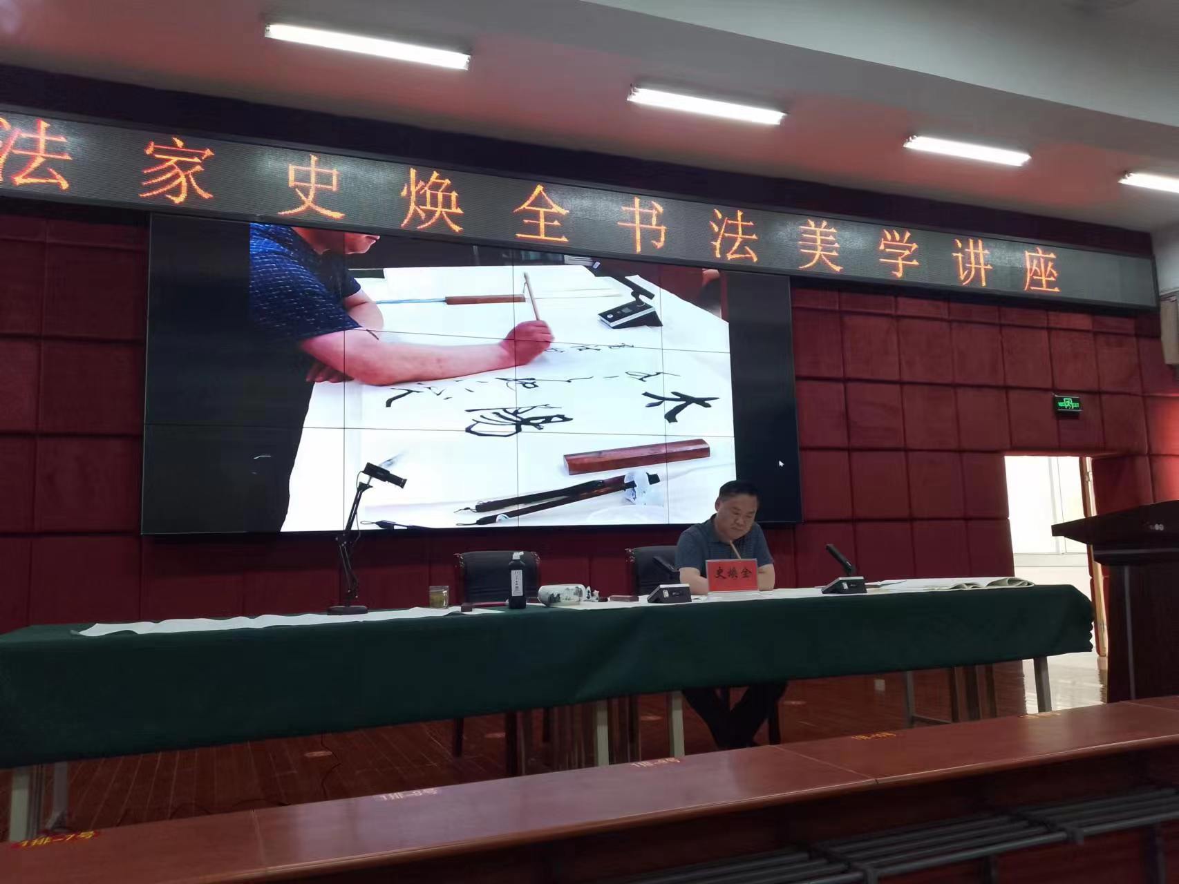 本网讯(文/校团委 庞博)为提高师生艺术修养,助力学生成长成才,5月18日下午,我校邀请著名书法家史焕全教授在图书馆五楼学术报告厅作书法美学学术讲座。学生书法社团、广大师生书法热爱者约三百人聆听受益。