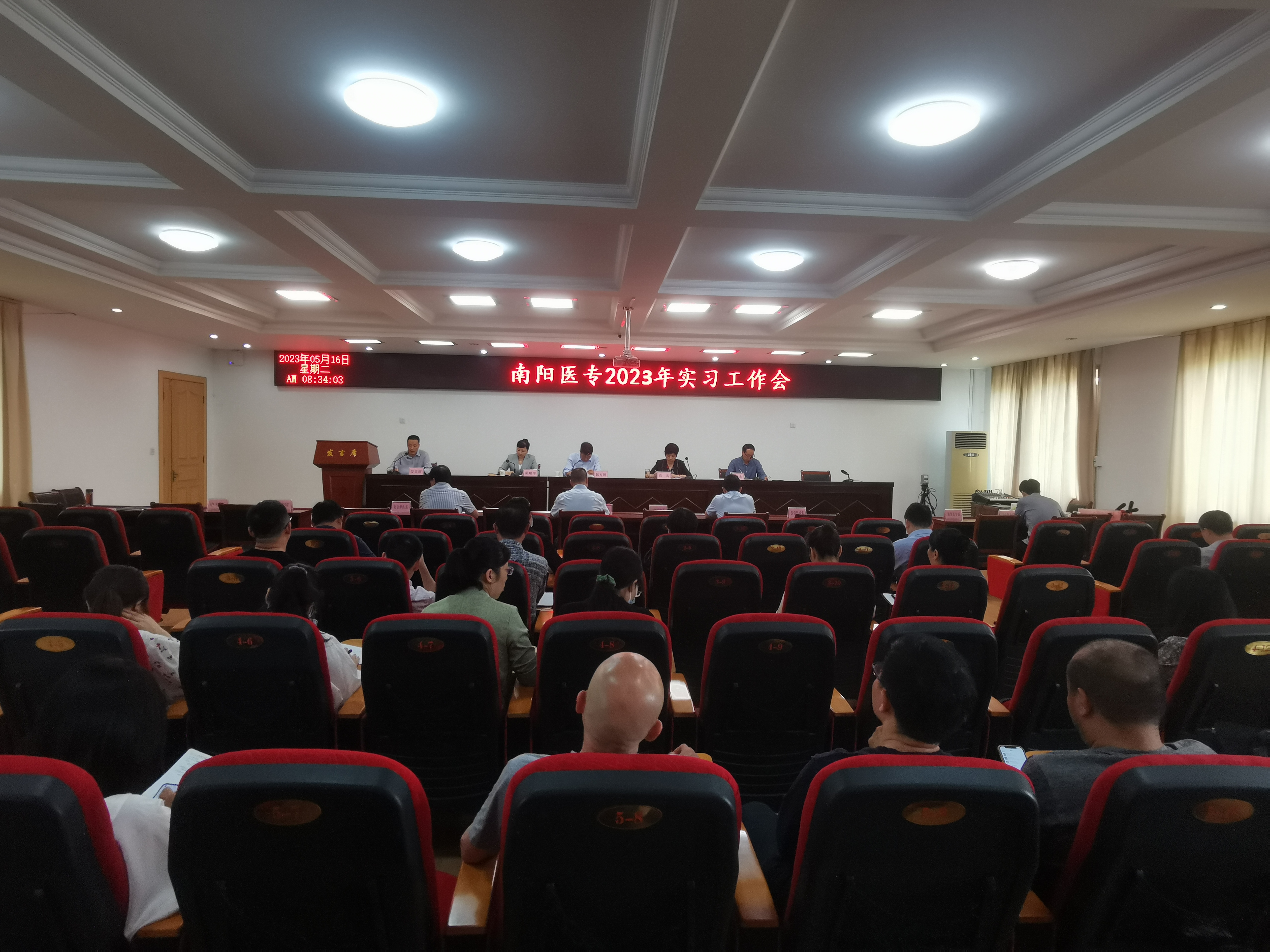 本网讯(文/教务处 周玉金)5月16日上午,南阳医专2023年实习教学工作会议在一号行政楼五楼会议室顺利召开。学生处、教务处负责人、各涉学系(部、院)书记、主任(院长)、副书记、学工办主任、实习专干及实习科全体人员参加会议。会议由教务处处长刘荣志主持。校党委委员、副校长郭万周、范真到会并讲话。