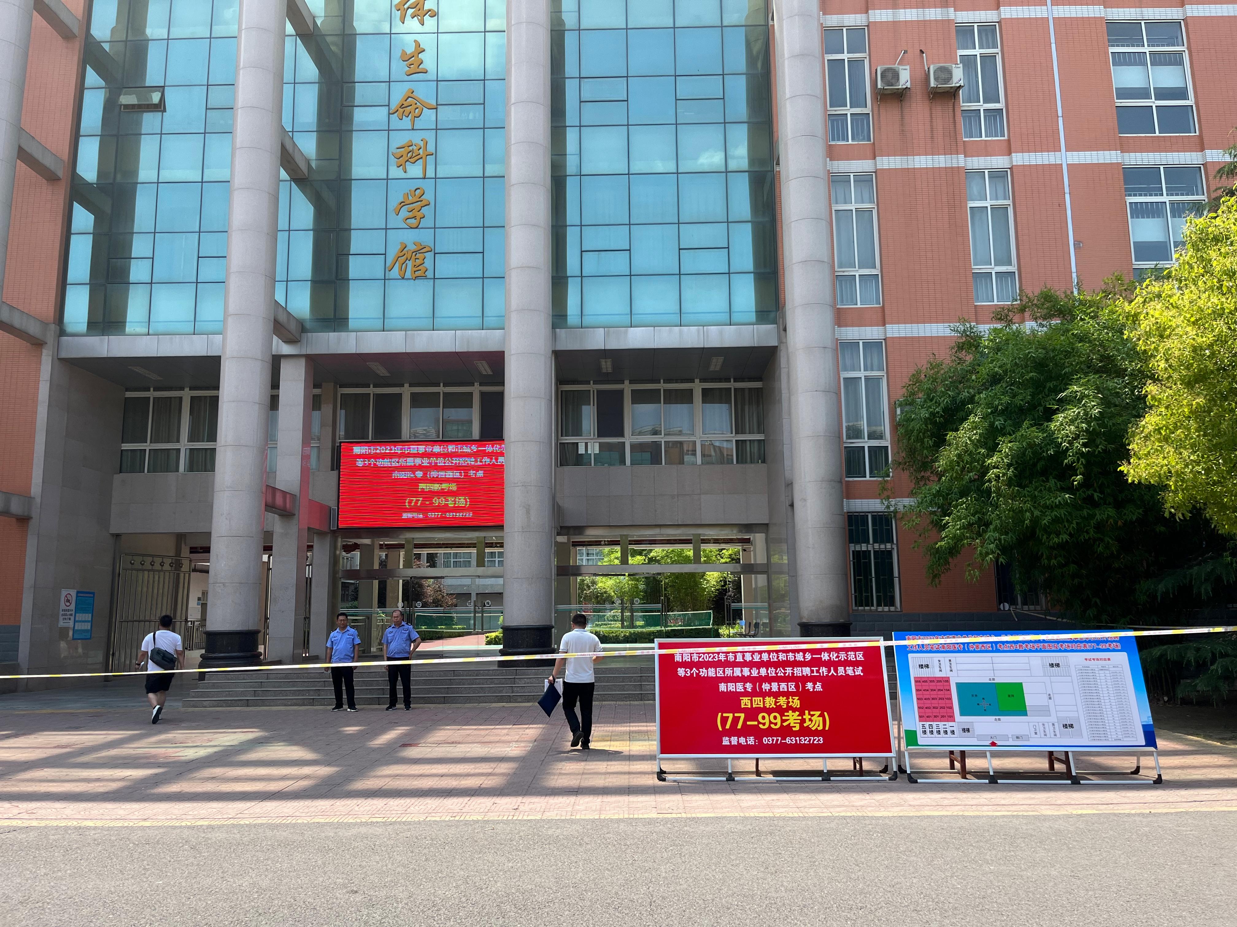 本网讯(文/教务处 龚垒)5月20月,我校承担的2023年南阳市直事业单位和3个功能区所属事业单位公开招聘工作人员考试顺利举行。本次考试严格按照省、市笔试工作要求,设置仲景东区、仲景西区两个考点,参加考生5000余名。