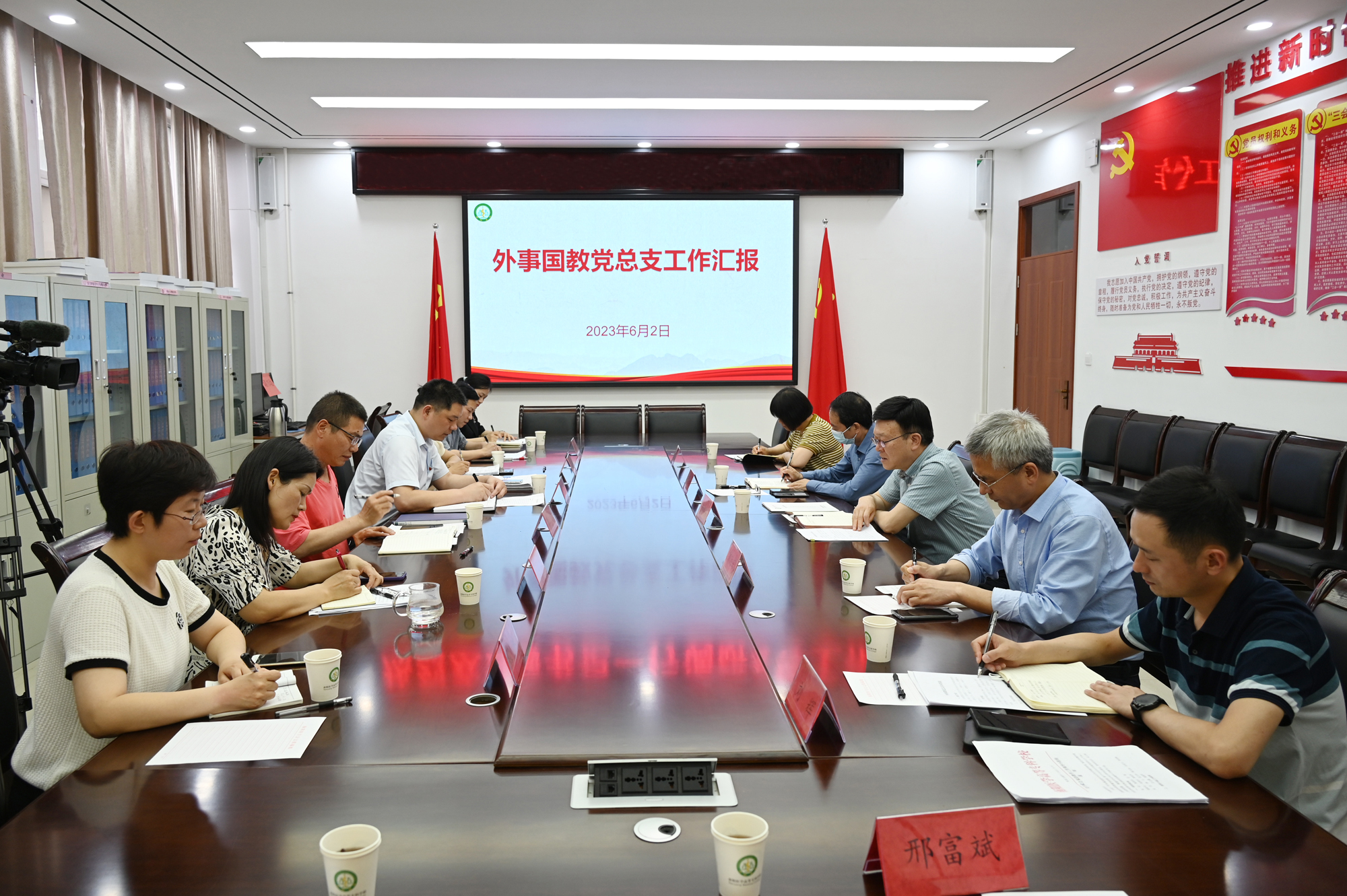 本网讯(文/国际教育学院 李斐)6月2日下午,党委书记柳明伟一行深入外事国教党总支调研指导工作。党政办公室、教务处、质量管理办公室、学生处等部门相关同志陪同调研。外事国教党总支副科级以上干部参加会议。