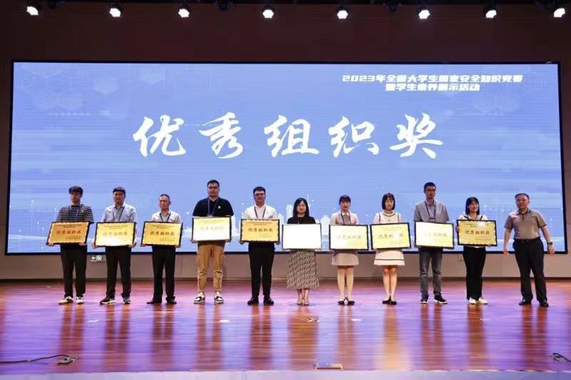 本次全省大学生国家安全知识竞赛分为网络竞赛和现场决赛两个阶段,自5月份接到《中共河南省委教育工委办公室 河南省教育厅办公室关于开展2023年全省大学生国家安全知识竞赛暨学生素养展示活动的通知》后,校党委高度重视,法制办统筹安排,各院(系)精心组织,校团委、马院和公教部给予了大力支持,最终我校“仲景学子战队”成功入围全省本专科九强战队。在总决赛中,我校代表队素养展示环节获专科第一名、总排名全省第六名,最终荣获全省大学生国家安全知识竞赛暨学生素养展示活动三等奖和优秀组织奖。