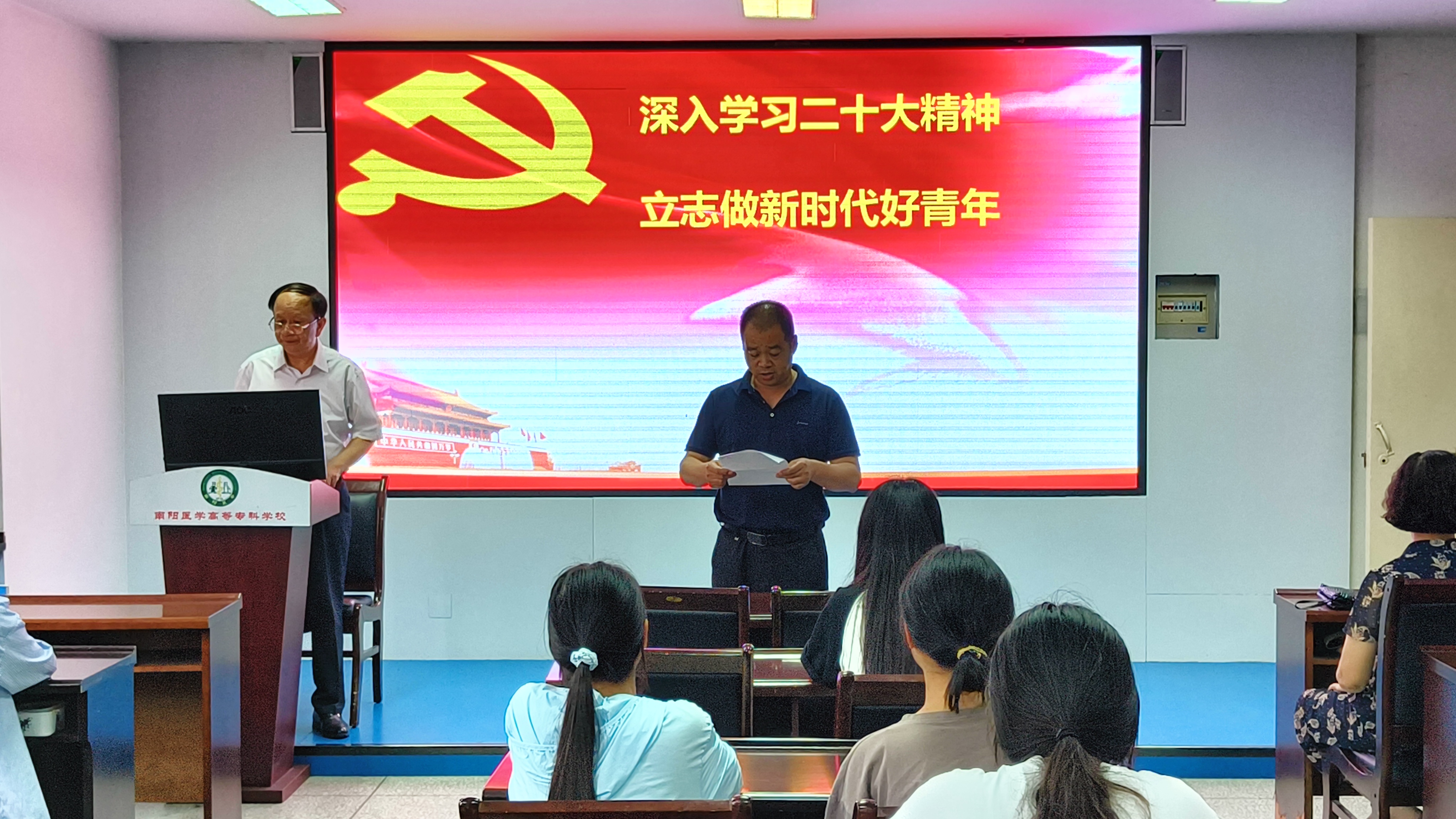 本网讯(文/离退处 朱迪 临床医学系 张佳媛)6月20日下午,我校在仲景西区4号教学楼举行南阳医专关工委临床医学系专场报告会。学校关工委常务副主任张金虎教授作宣讲报告。临床医学系领导、全体辅导员和80余名学生代表参会。报告会由临床医学系党总支书记秦玖刚主持。
