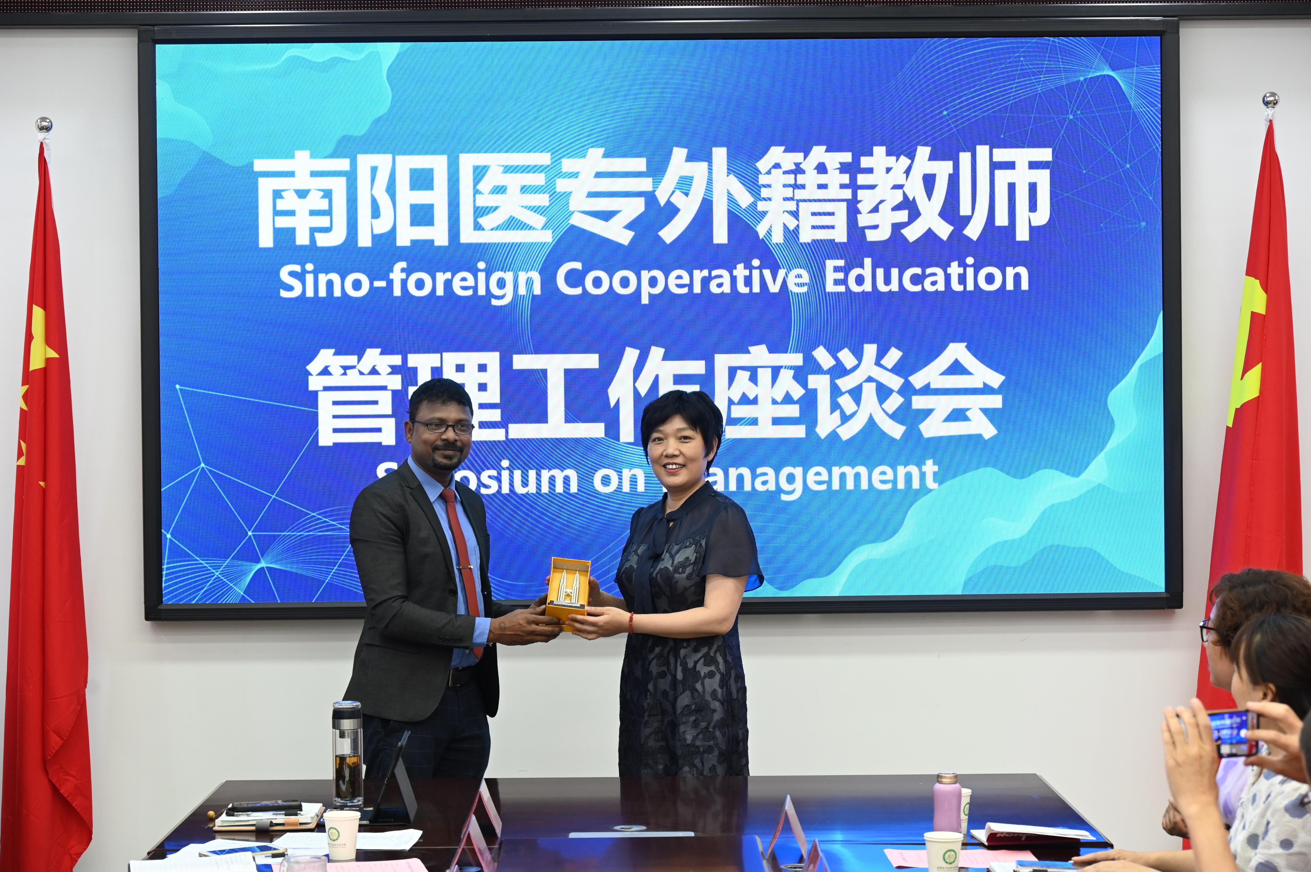 本网讯(文/国际教育学院 李斐)为推进中外教学交流,加快我校与合作院校课程对接步伐,6月26日下午,南阳医专口腔医学专业中马教师教学研讨会在国际教育学院举行。马来西亚林肯大学学院教师AALIYAYA、KATTA,党委委员、副校长范真以及我校口腔医学专业教师代表参加此次研讨会。会议由国际教育学院副院长李连焕主持。