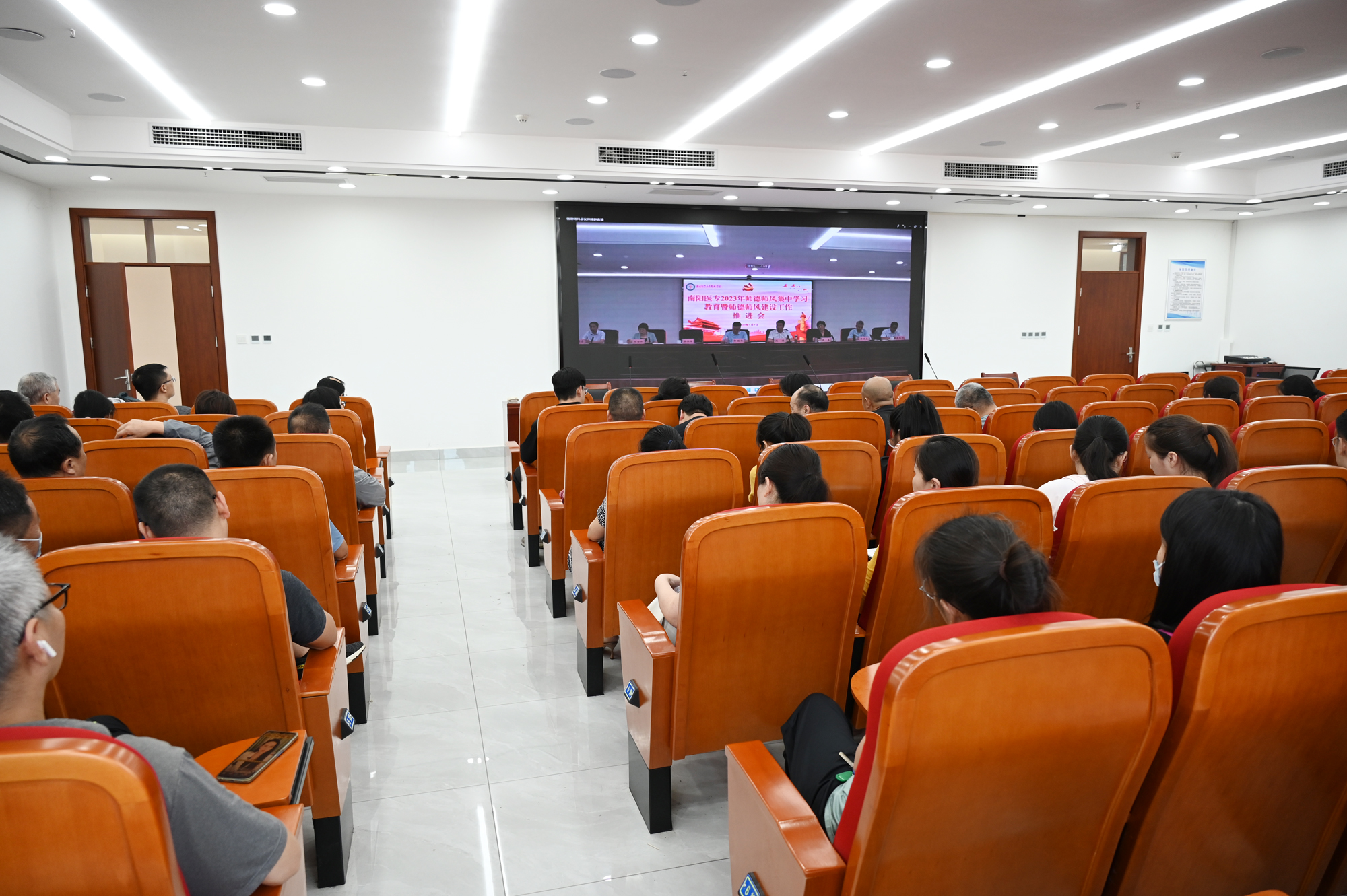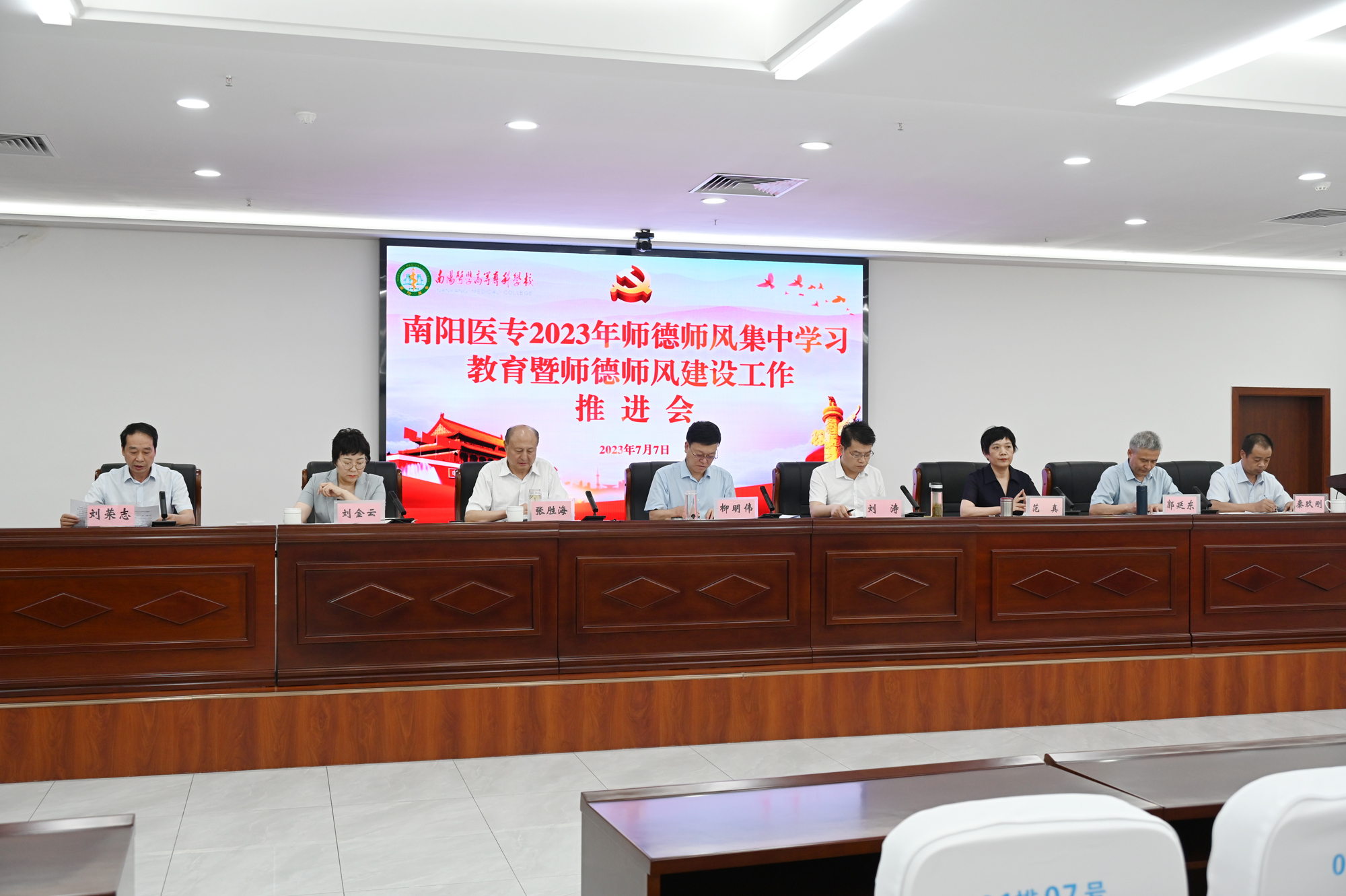 本网讯(文/教务处 梁亮)7月7日下午,我校在仲景文化中心召开2023年师德师风集中学习教育暨师德师风建设工作推进会。学校领导班子成员出席会议,校本部全体教职工、后勤服务人员代表、三所附属医院相关负责同志参加会议。会议由学校党委副书记刘涛主持。