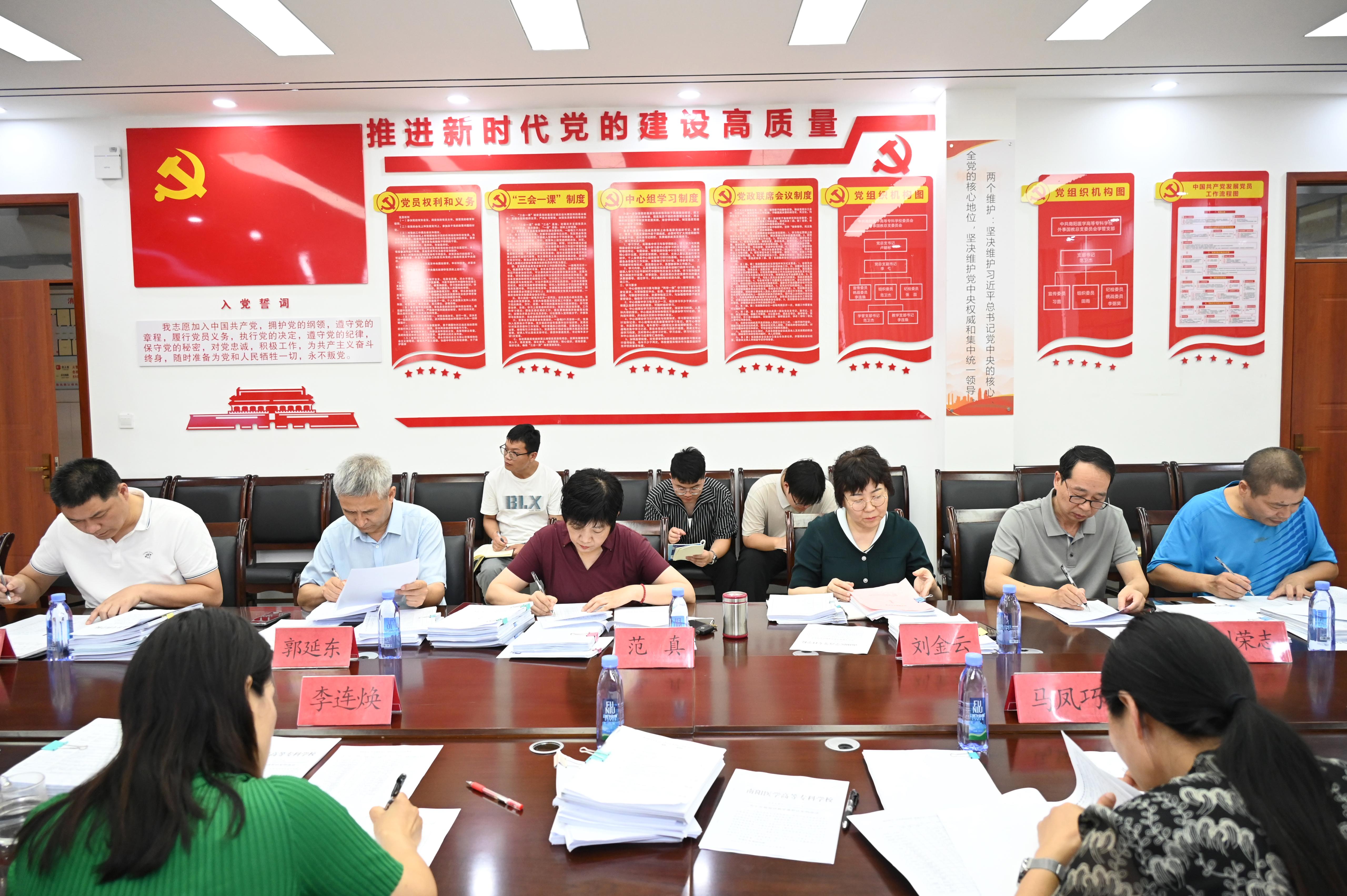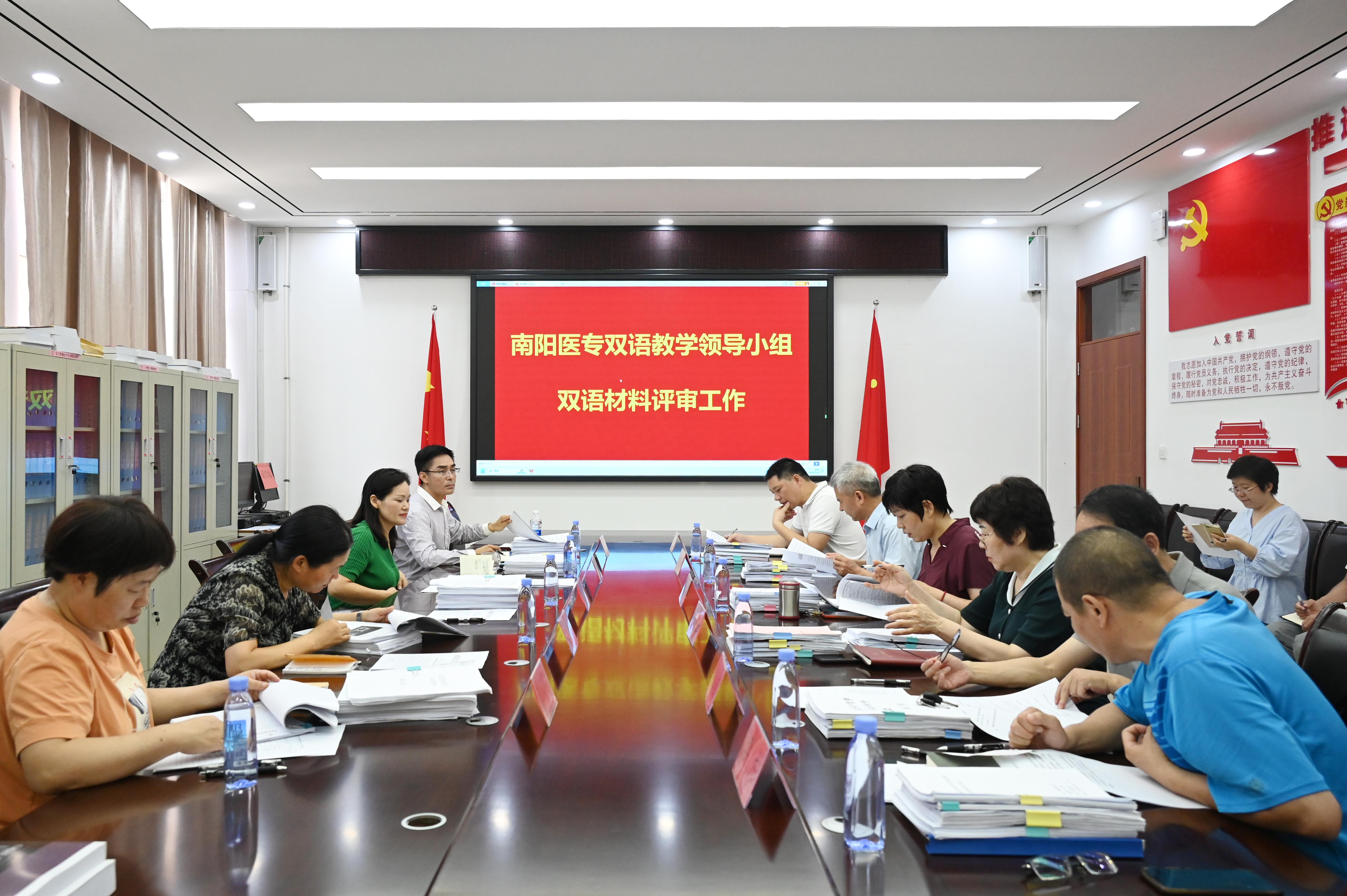 本网讯(文/国际教育学院 程琳)7月28日上午,南阳医专2022-2023学年“双语课程”评审工作在仲景西区3号教学楼423会议室进行。校党委委员、副校长范真、郭延东、刘荣志以及质量办、公教部、外事处、国教院等相关双语教学领导小组成员参加评审,校党委委员、纪委书记刘金云全程监督。
