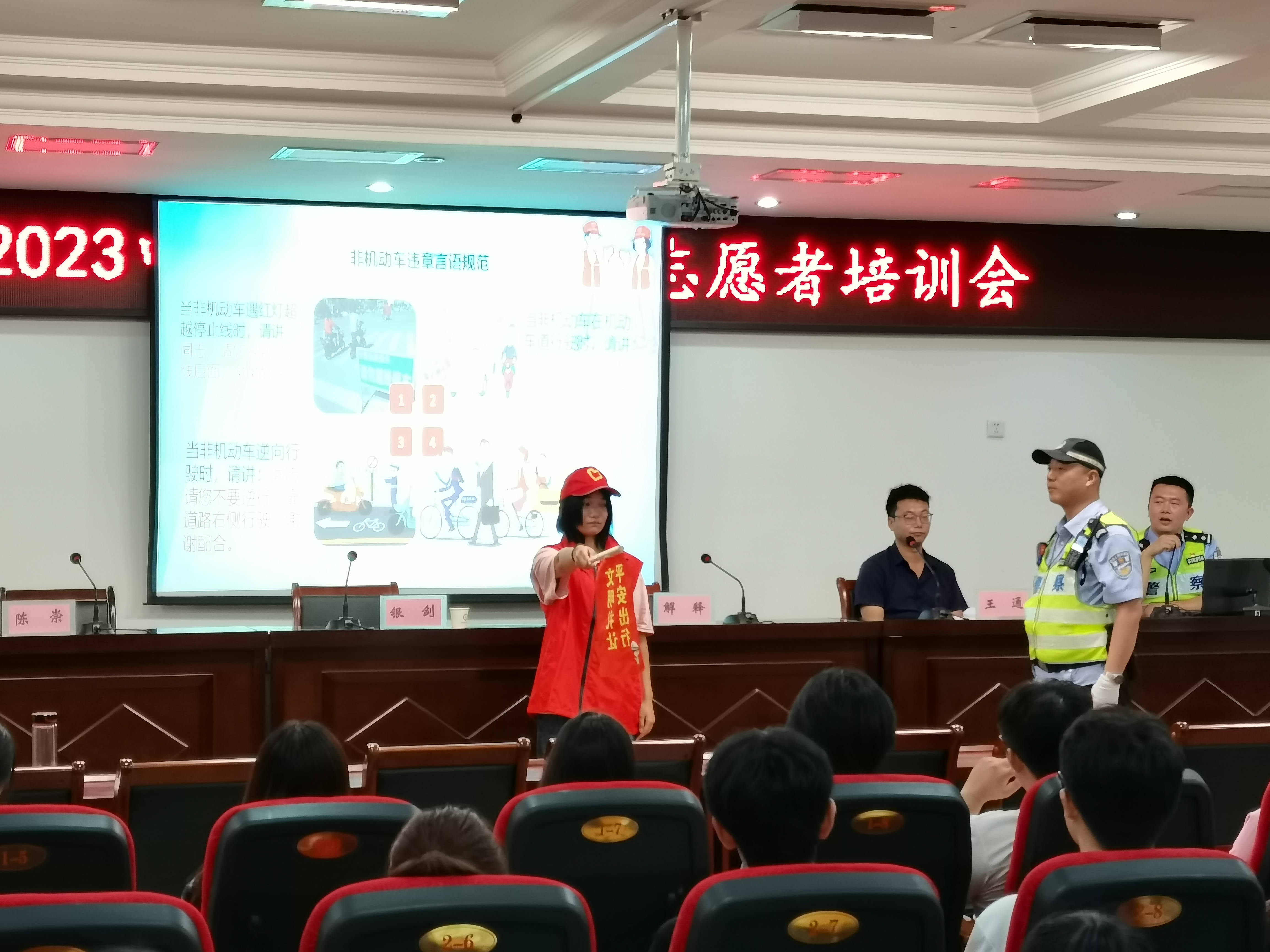 解释从迷笛音乐节简介、志愿服务的意义、志愿者服务规范和服务注意事项等四个方面作了培训,希望志愿者要熟知本次音乐节出行攻略、南阳文化知识、服务内容等,提高服务质量,提升服务水平。徐崇重点围绕文明交通志愿服务,从认识交通标示标志和交通志愿者岗位职责、执勤要求、注意事项等四个方面作了培训,与会交警进行现场示范,并与参训志愿者进行了互动演示。王通重点介绍了南阳丰厚的文旅资源,从南阳山水的钟灵毓秀、南阳文化的博大厚重、南阳康养的得天独厚为大家描绘了一个让人“一顾惊艳”“二顾倾心”“三顾忘返”的大美南阳、文明南阳、魅力南阳,希望广大志愿者以优质服务擦亮南阳城市名片,助力南阳文旅文创产业高质量发展。