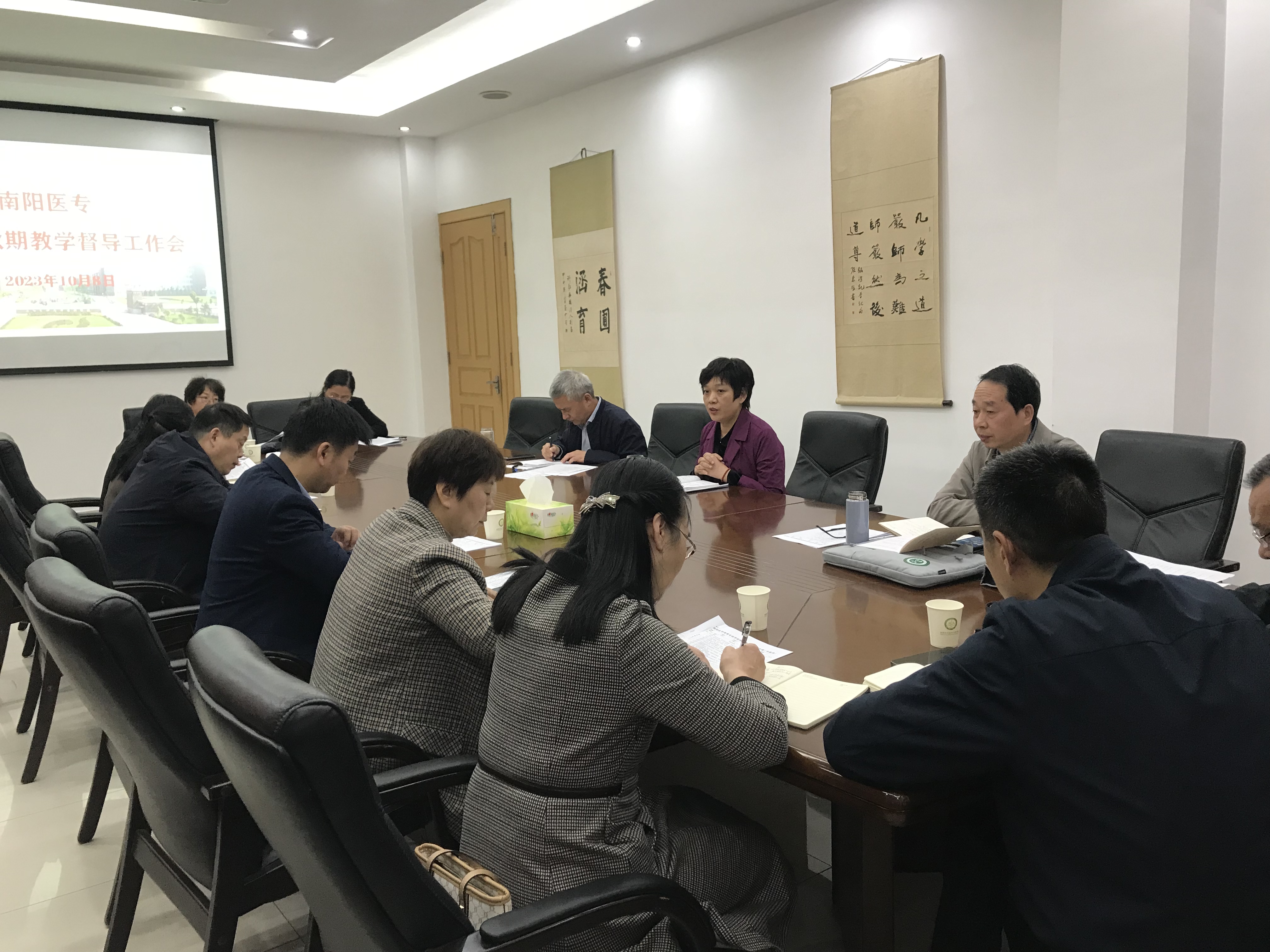在前一阶段督导听评基础上,10月8日,学校召开了2023年秋期教学督导工作会议。会上,郭延东对督导听评工作进行了总结,肯定了教学督导工作所取得的成绩,指出了教学工作中存在的问题,同时也对督导工作提出了更高的要求;通报了课堂教学质量评价比例的调整方案,解读了新修订的评价标准。