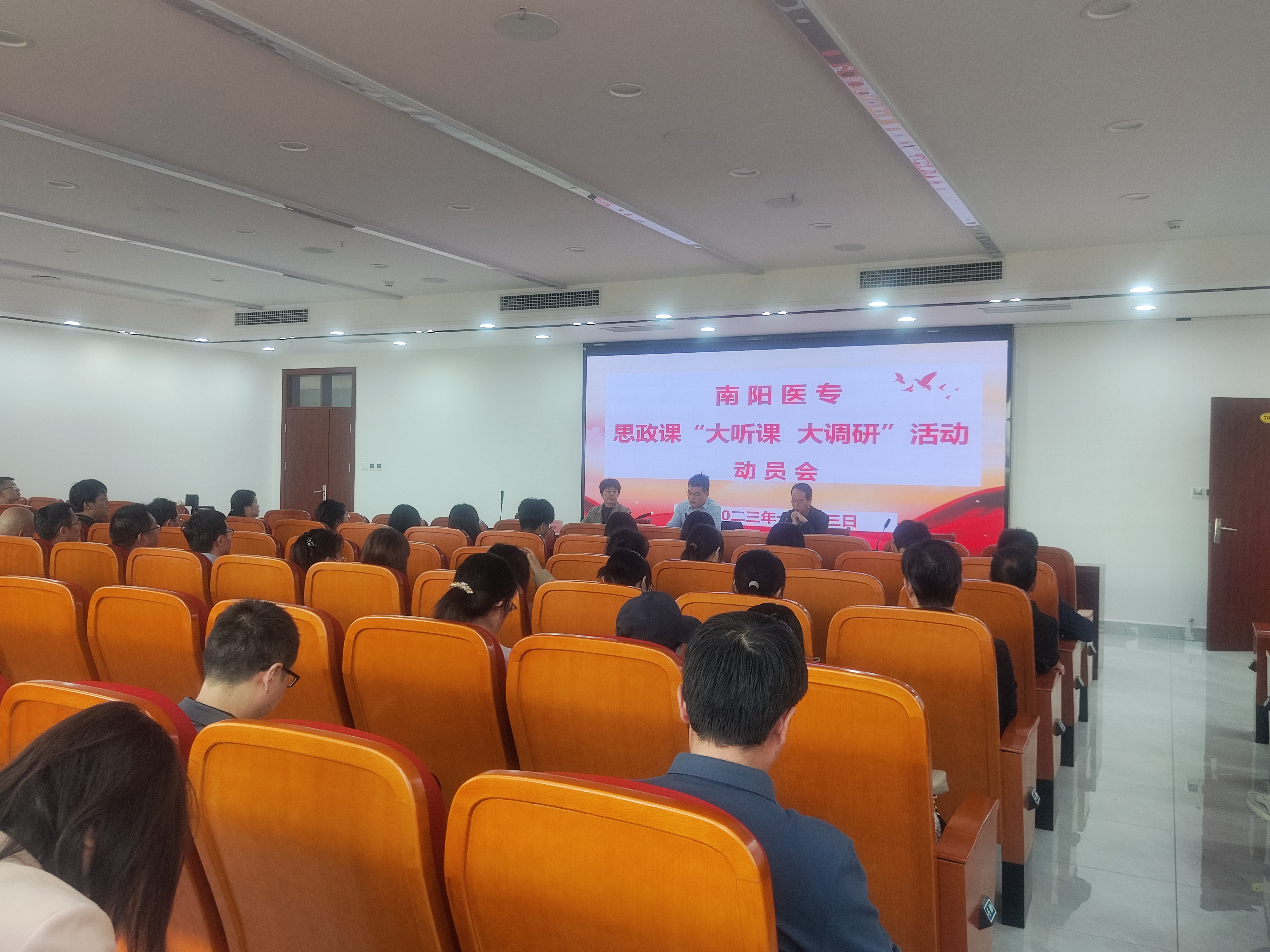 本网讯(文/马克思主义学院 何义霞)10月13日,根据中共河南省委教育工委办公室 河南省教育厅办公室《关于开展2023 年度全省高校秋季学期思政课“大听课 大调研”活动的通知》要求,我校召开了2023年秋期思政课“大听课 大调研”活动动员会,对相关工作进行安排部署。党委副书记刘涛出席会议并讲话,校纪委相关人员、马克思主义学院班子成员及全校思政课教师参加会议,校党委委员、副校长刘荣志主持会议。