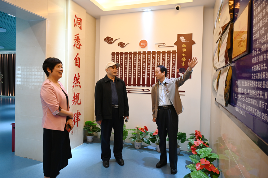 在宛期间,李传旭一行在南阳医专进行了深入调研,先后参观了学生健康服务与心理关爱中心、体育馆、人体生命科学馆、非遗中心、中医药科技馆等场馆,考察了“点亮心灯”诗社、“点亮心灯”艺术团和“点亮心灯”志愿服务团的活动开展情况并进行详细指导,对南阳医专的文化历史底蕴、办学条件、心理健康教育等工作给予充分肯定。(编审 李红普)