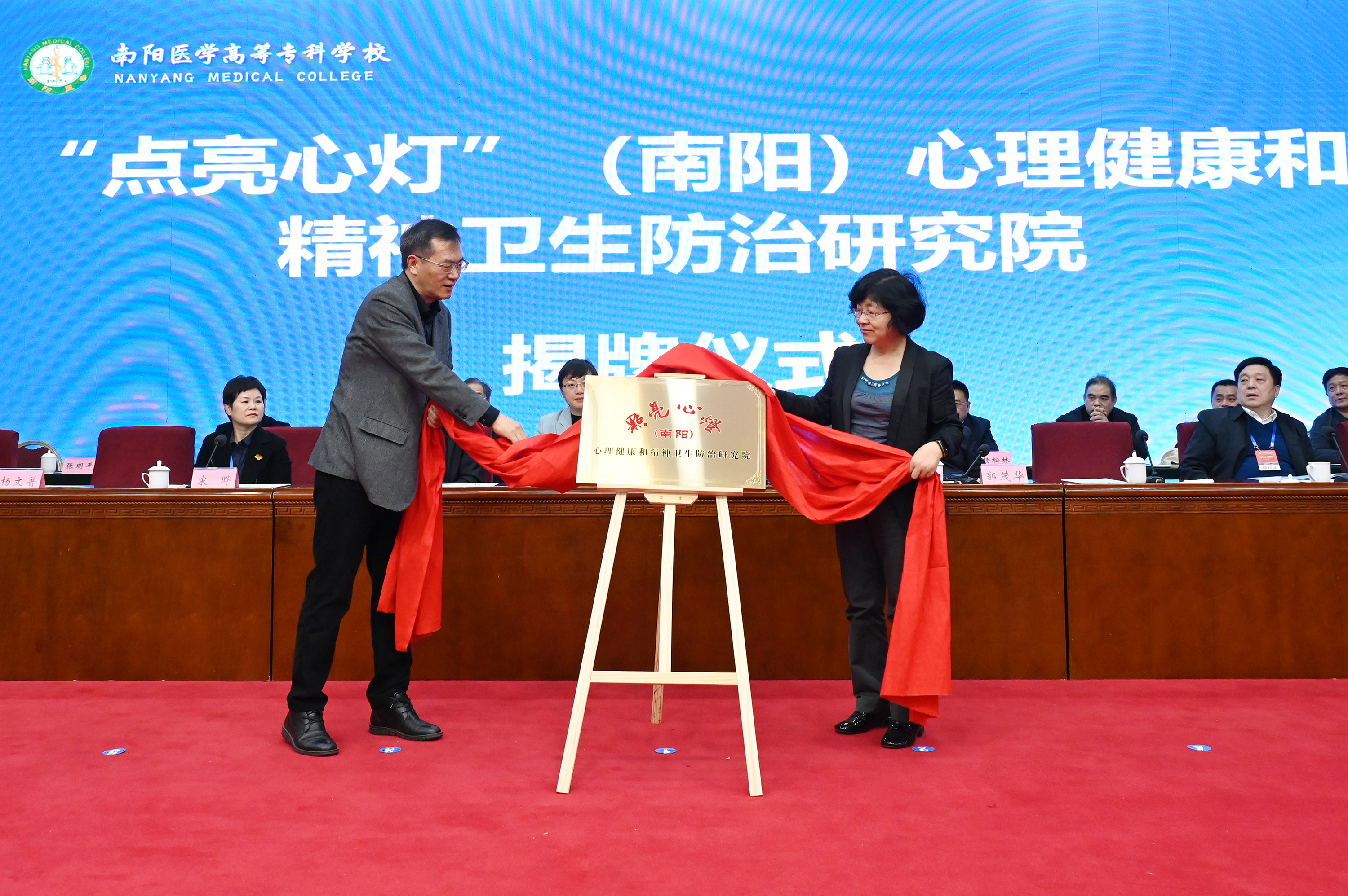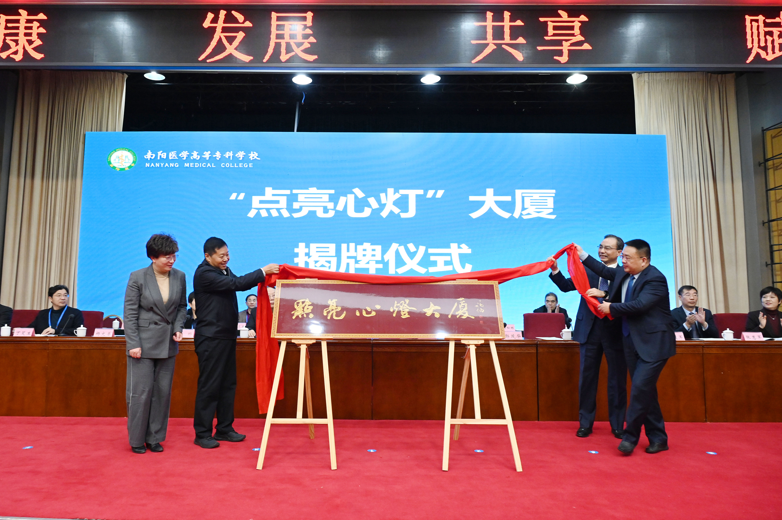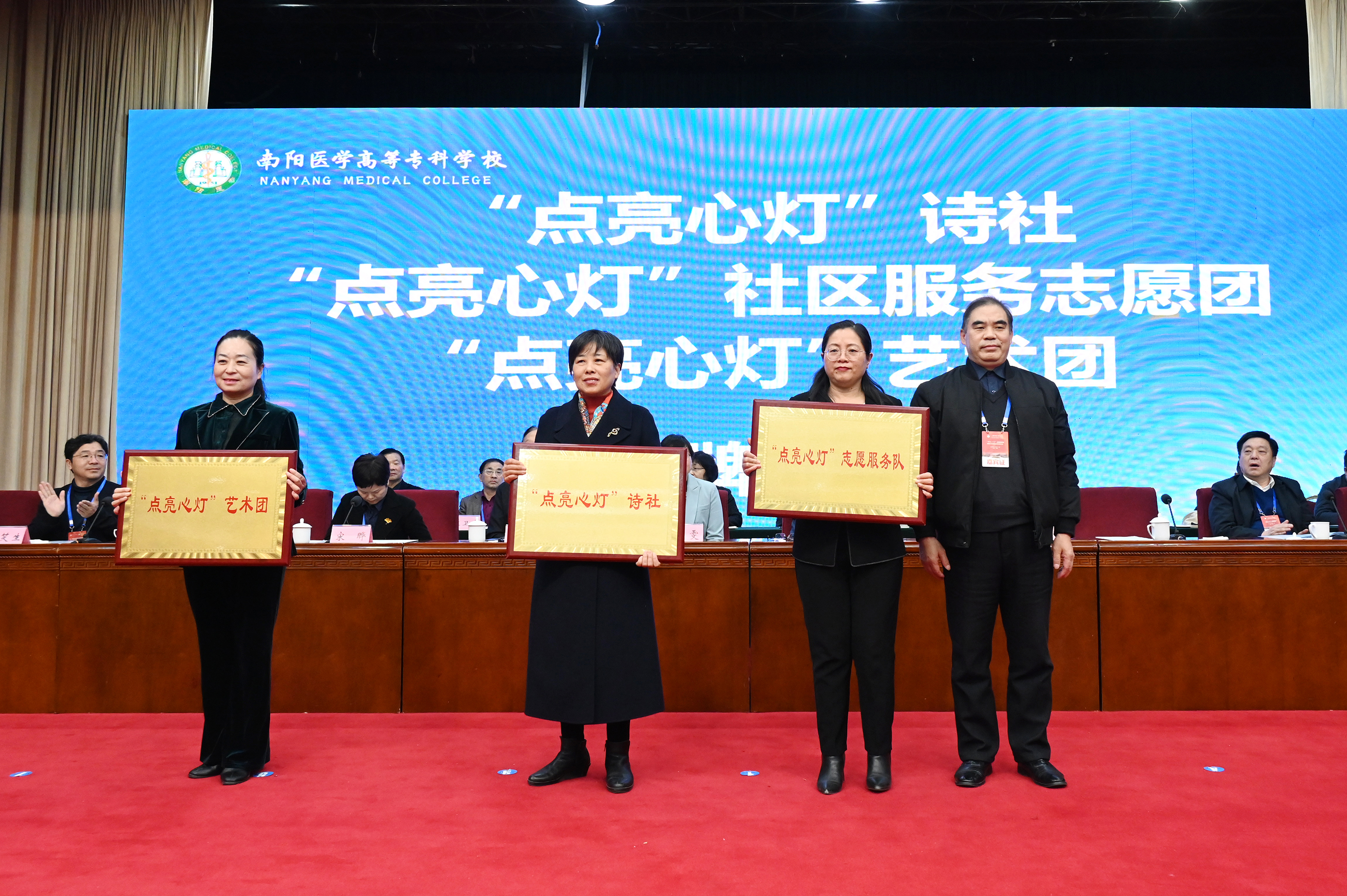 中共河南省委教育工委专职副书记尹洪斌,河南省卫健委二级巡视员郭茂华,南阳市卫健体委党组书记、主任李芳,南阳市委政法委副书记、市平安建设促进中心主任杨松林为南阳医专“点亮心灯”大厦揭牌。朗新科技集团党委书记、副董事长张明平,南阳市民政局党组书记、局长程治敏为“点亮心灯”(南阳)心理健康和精神卫生防治研究院揭牌。国家心理健康和精神卫生防治中心社区康复指导部副主任李传旭为“点亮心灯”诗社、“点亮心灯”社区服务志愿团、“点亮心灯”艺术团授牌。河南省非物质文化遗产项目技艺大师、洛阳烧伤医院董事长肖建勋,“点亮心灯”公益歌曲词作者、朗新科技集团党委书记、副董事长张明平,中国电影家协会导演、“点亮心灯”电视剧导演朱少宇,中央电视台科教频道制作人、“点亮心灯”综艺节目制作人高秀秀分别介绍“点亮心灯”公益项目推动情况。