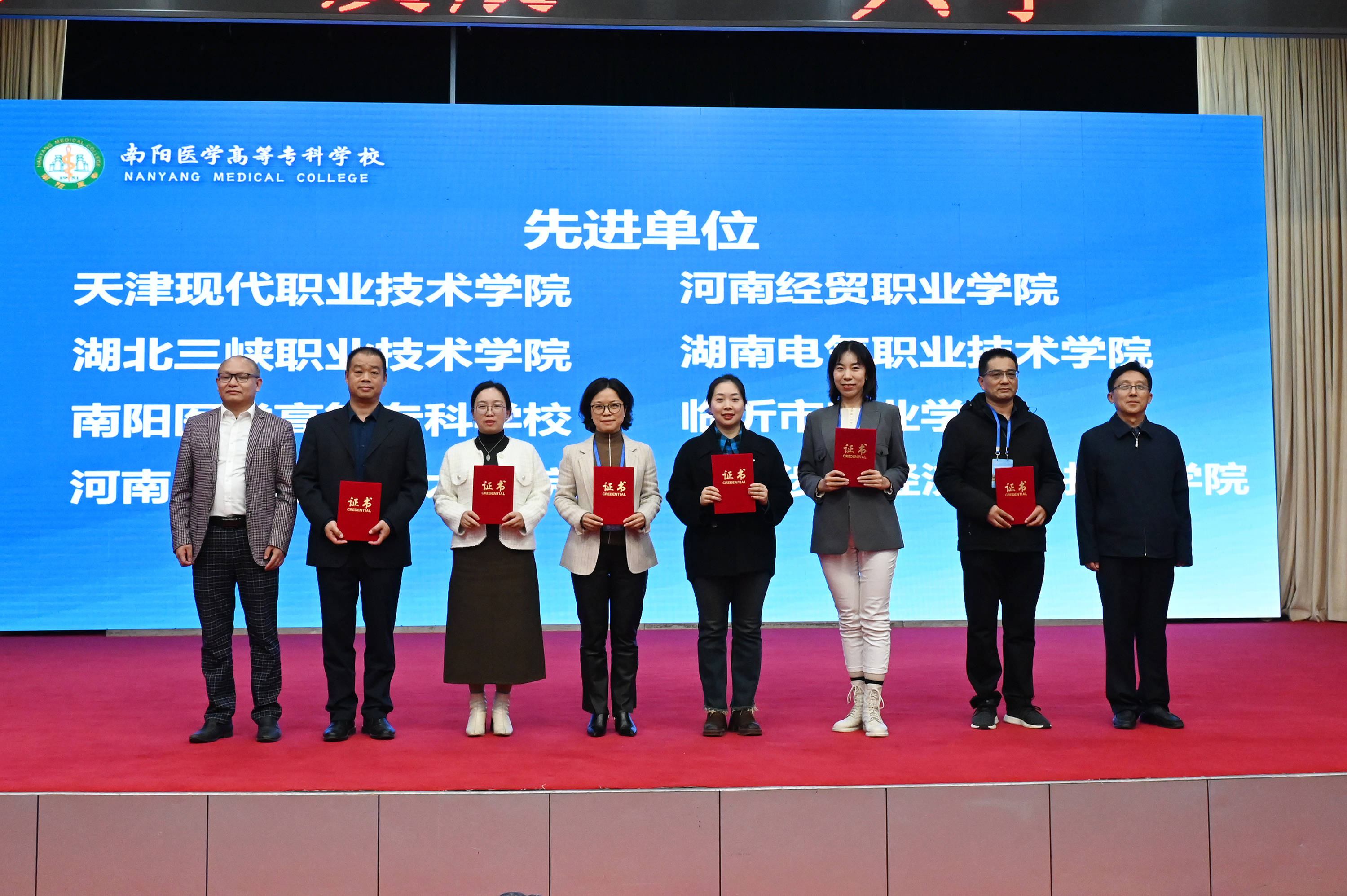 在经验分享阶段,范真从工作机制建设、文艺社团活动、校外实践服务等方面对南阳医专心理健康教育工作进行介绍,并对共同体下一步工作任务进行详细阐述,按照教育部《行业产教融合共同体建设指南》和17部门联合下发的行动计划要求,积极开展五育并举、健康教育、监测预警、咨询干预、社会服务、队伍建设、健康科研、健康环境营造等八项重点工作,将心理健康教育工作与教学科研创新相结合,与共同体成员单位合力进行心理健康专题教学资源库建设,制定中医心理类技术技能标准,开发心理测评工具,研发心理教学设备。安阳师范学院心理健康教育与咨询中心主任刘媛媛、三峡职业技术学院心理健康指导中心主任简璐丝、黔南民族幼儿师范高等专科学校副校长韦永武、共青科技职业学院学工处处长黄鑫等院校领导分享了本校心理健康教育工作方面的成功做法和经验。范真、陈桂林、陈俊启为全国心理健康产教融合共同体理事长、常务副理事长、副理事长、常务理事、理事单位颁牌,为全国职业院校心理健康教育先进单位、获得心理健康教育优秀案例单位颁发证书。