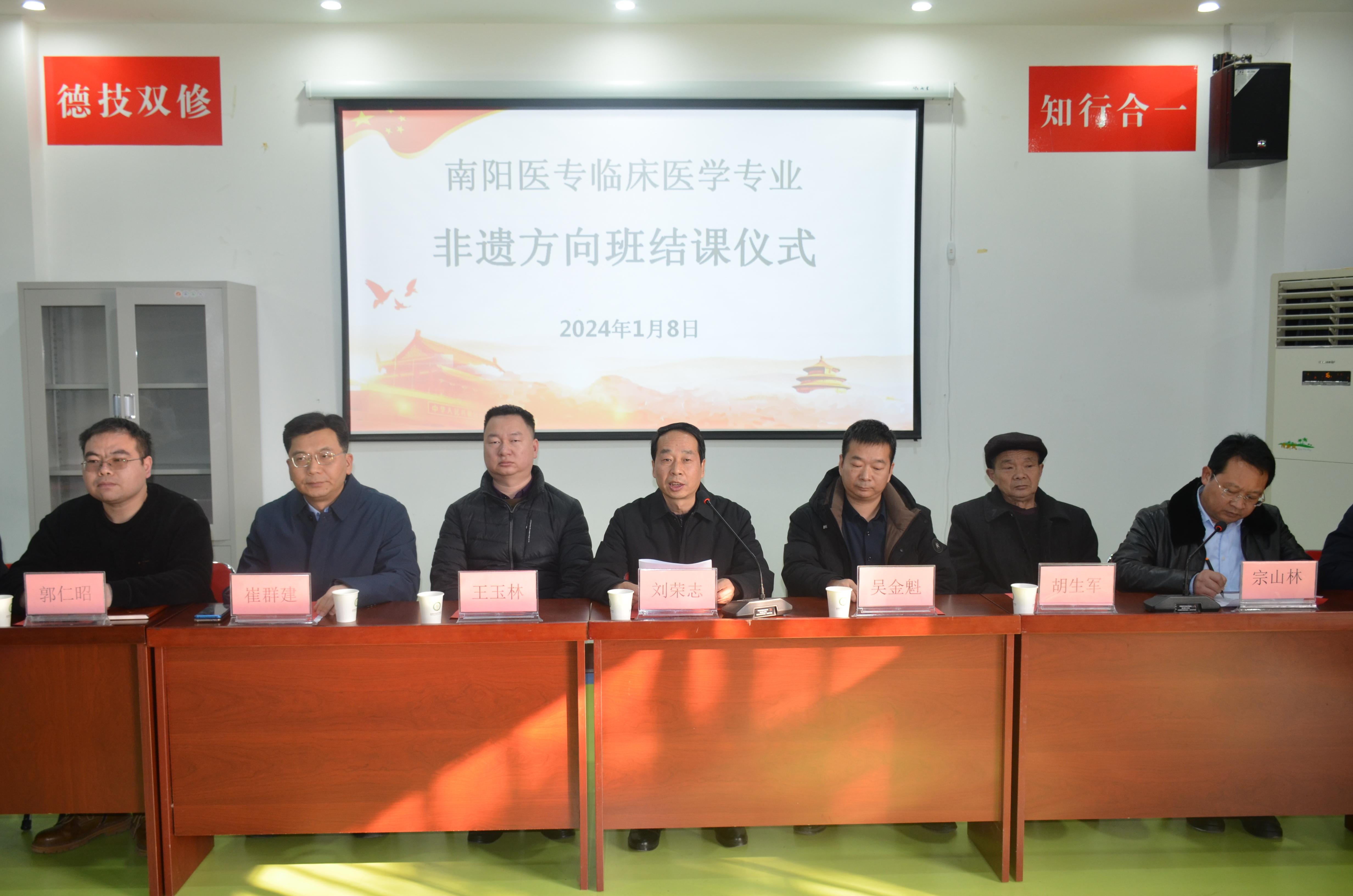 副校长刘荣志作总结讲话。他指出,学校实施“非遗聚火”工程,致力“传承仲景文化、培育仲景学子、擦亮仲景品牌”,有力推动非遗传承创新发展,为基层培养高素质实用型人才。临床医学系开设的非遗方向班,是贯彻落实学校“非遗五进”的具体行动,人才培养方案修订、课程设置、宣传动员、教学管理、社会服务等方面工作都很到位。学生学习积极性高,技能学到手,能够拿出手,传承传统技艺,也提高了就业的能力。刘荣志强调,要按照职业教育改革的新要求,进一步探索非遗教学科研新模式,推进非遗“三融”,为非遗传承创新和培养高质量医学人才做出更大贡献。
