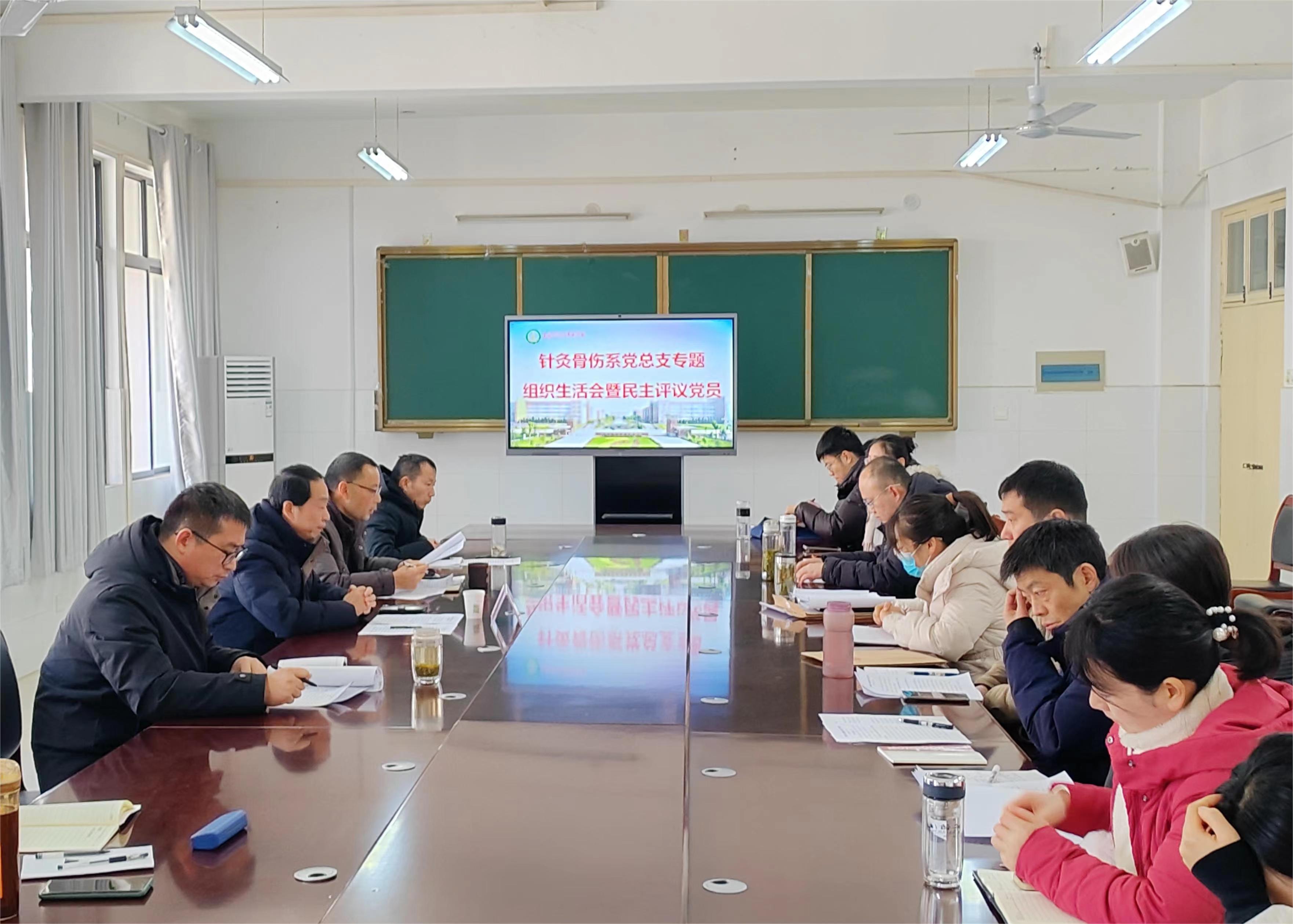 本网讯(文/针灸骨伤系 梁振新)1月22日上午,针灸骨伤系党总支在仲景东区士安楼4楼会议室召开学习贯彻习近平新时代中国特色社会主义思想主题教育专题组织生活会和民主评议党员大会。校党委员、副校长刘荣志出席指导,针灸骨伤系党总支全体党员参加。会议由针灸骨伤系党总支副书记李明哲主持。