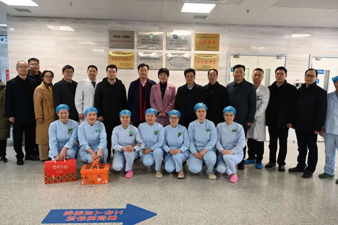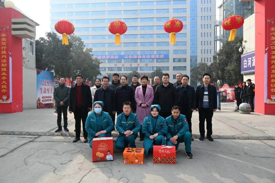 本网讯(文/党政办 刘辉)2月10日,正月初一上午,校长范真、党委副书记刘涛、副校长刘荣志带领党政办、总务处、保卫处、生活服务中心相关负责同志,深入仲景西区、仲景东区、孔明校区和三所附属医院,看望慰问值班值守的教职员工及医务工作者代表,向他们送去新春祝福。