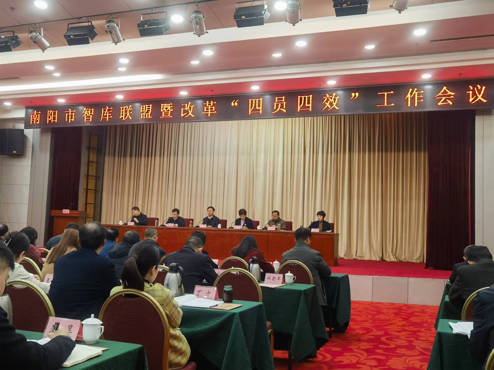本网讯(文/科研处 赵晴)近日,南阳市智库联盟暨改革”四员四效” 工作会议召开,校长范真作为联盟理事单位负责人出席会议并为获奖单位与个人颁奖。会议对6家优秀智库和45篇优秀研究成果及作者予以通报表扬,我校荣获优秀智库称号,我校党委书记柳明伟主持完成的《关于建设中医药文化传承中心的调研报告》、校长范真主持完成的《打造“南阳汉代大观苑”助力副中心城市建设》两项成果获得优秀研究成果一等奖,为市委提供了专业精准、真知灼见的咨政建议;校长范真主持完成的《做大做强南阳艾产业,打响“南阳艾”品牌》获得优秀研究成果二等奖,为南阳艾品牌建设和产业提质升级贡献了科技力量。