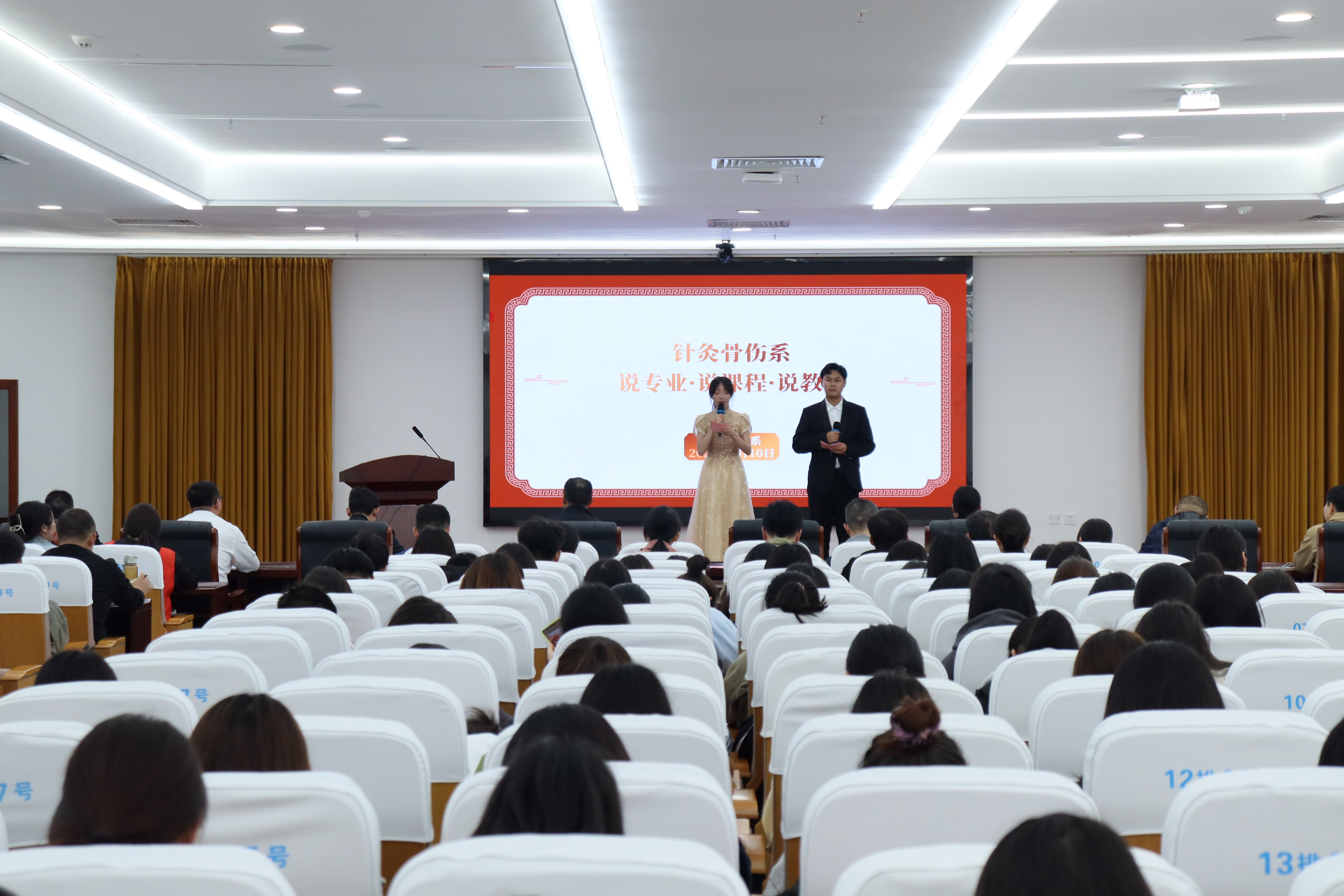 本网讯(文/针灸骨伤系 马驰)为促进针灸骨伤系特色高水平专业建设工作,针灸骨伤系于4月10日下午在仲景文化中心开展“说专业·说课程·说教材”活动。校党委委员、副校长刘荣志,针灸骨伤系党总支书记毕跃忠,质量管理办公室副主任马凤巧,教务处副处长张峰,实验设备管理中心副主任王斌,针灸骨伤系副主任李明哲等班子成员及全体教师参加活动。
