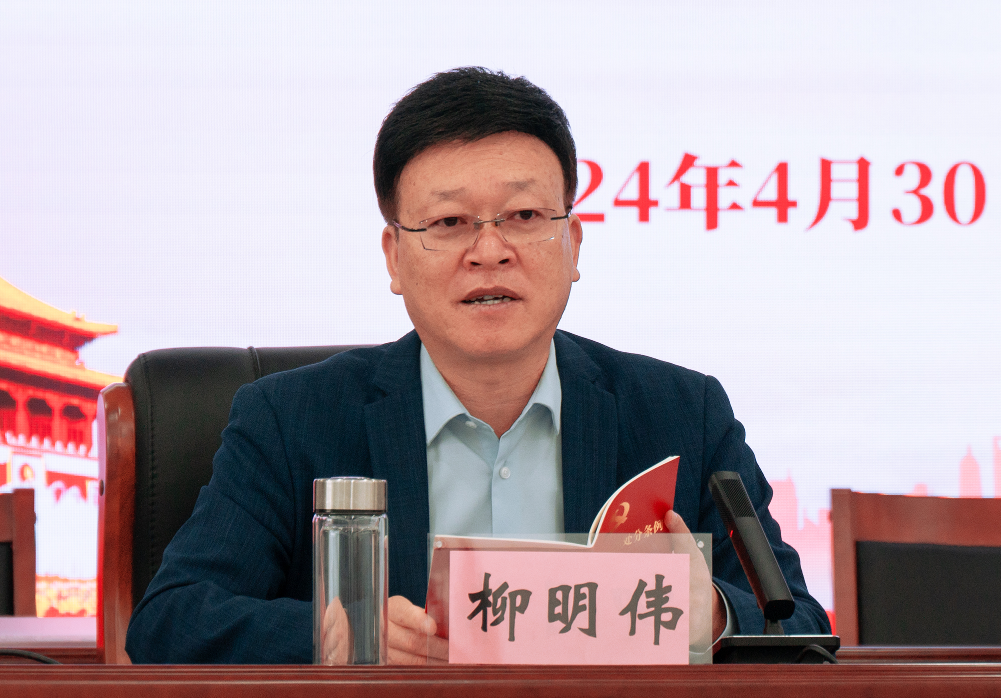 党委书记柳明伟领学解读新修订的《中国共产党纪律处分条例》,运用近期发生的违规违纪违法案例开展警示教育。