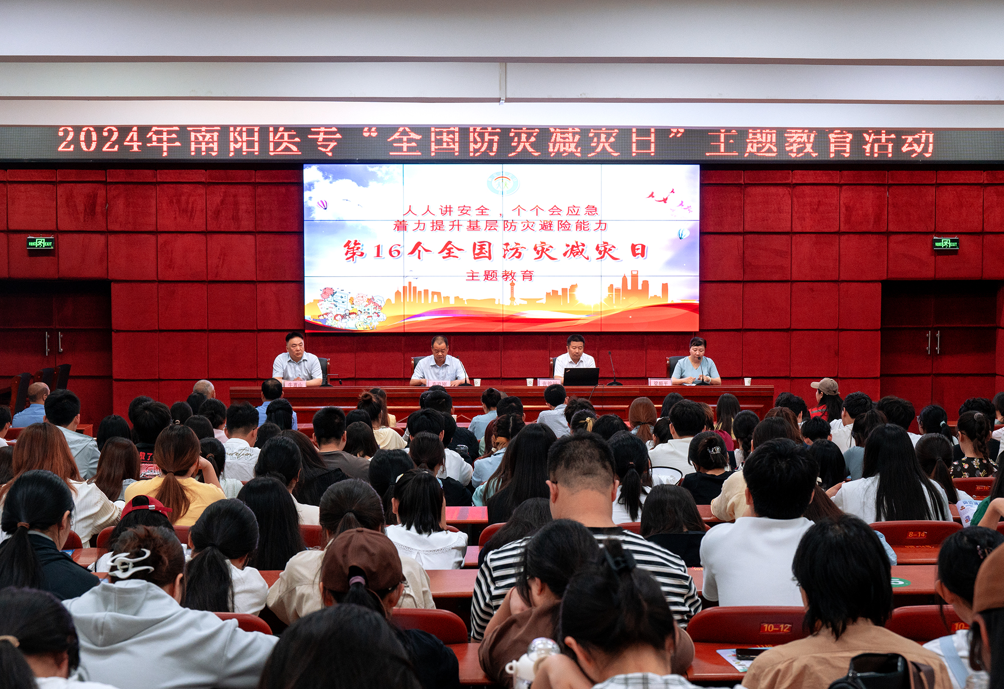 本网讯(文/学生处 胡凡)为深入学习贯彻习近平总书记关于防灾减灾救灾工作的重要论述精神,进一步提高我校师生防震减灾意识和应急处置能力,在第16个全国防灾减灾日即将到来之际,5月10日下午,我校特邀南阳市防震减灾中心总工、四级调研员张锦川主任在图书馆五楼报告厅作《地震灾害与防震减灾》专题讲座。校党委委员、副校长秦玖刚出席活动,市防震减灾中心有关领导,我校学生处、保卫处及各系(部、院)副书记、安全专干参加活动。300名学生代表现场聆听讲座,其他同学通过直播或回放的形式收听收看讲座。学生处处长梁顺平主持讲座。