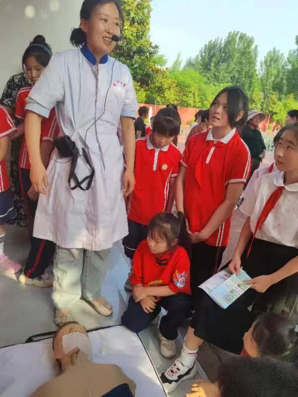 活动中,科技特派员服务团向学校捐建了中医药文化展室,含有一百余种中药材标本、展板、展架等传统医药疗法器具。南阳医专二附院义诊团的医生们为同学们讲解急救和推拿保健知识,邀请他们亲身体验中药制作过程,并为家长及周边群众提供慢性病义诊活动。