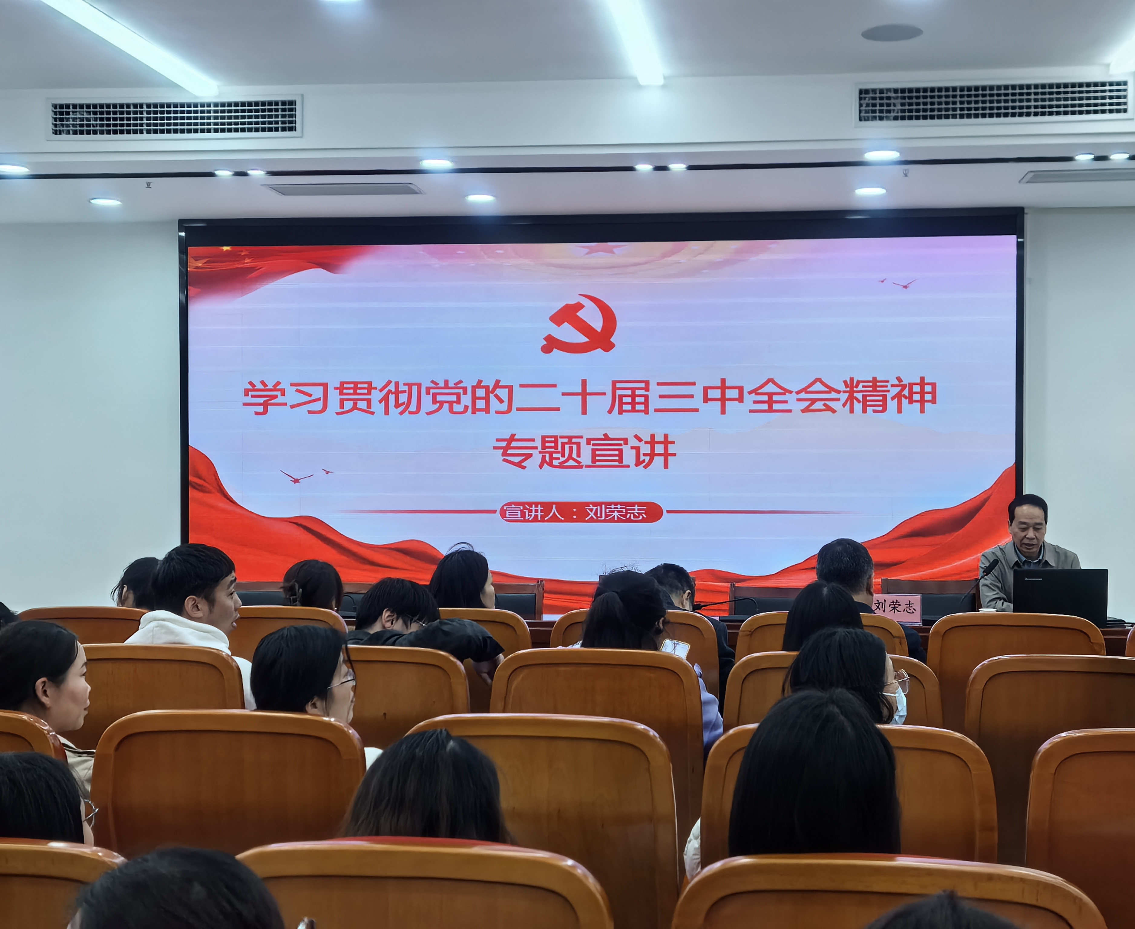 本网讯(文/公共教学部 郭嘉一)10月25日,校党委委员、副校长刘荣志深入公共教学部宣讲党的二十届三中全会精神。基础医学部党总支、体育保健与运动医学系党总支、公共教学部直属党支部全体党员参加。