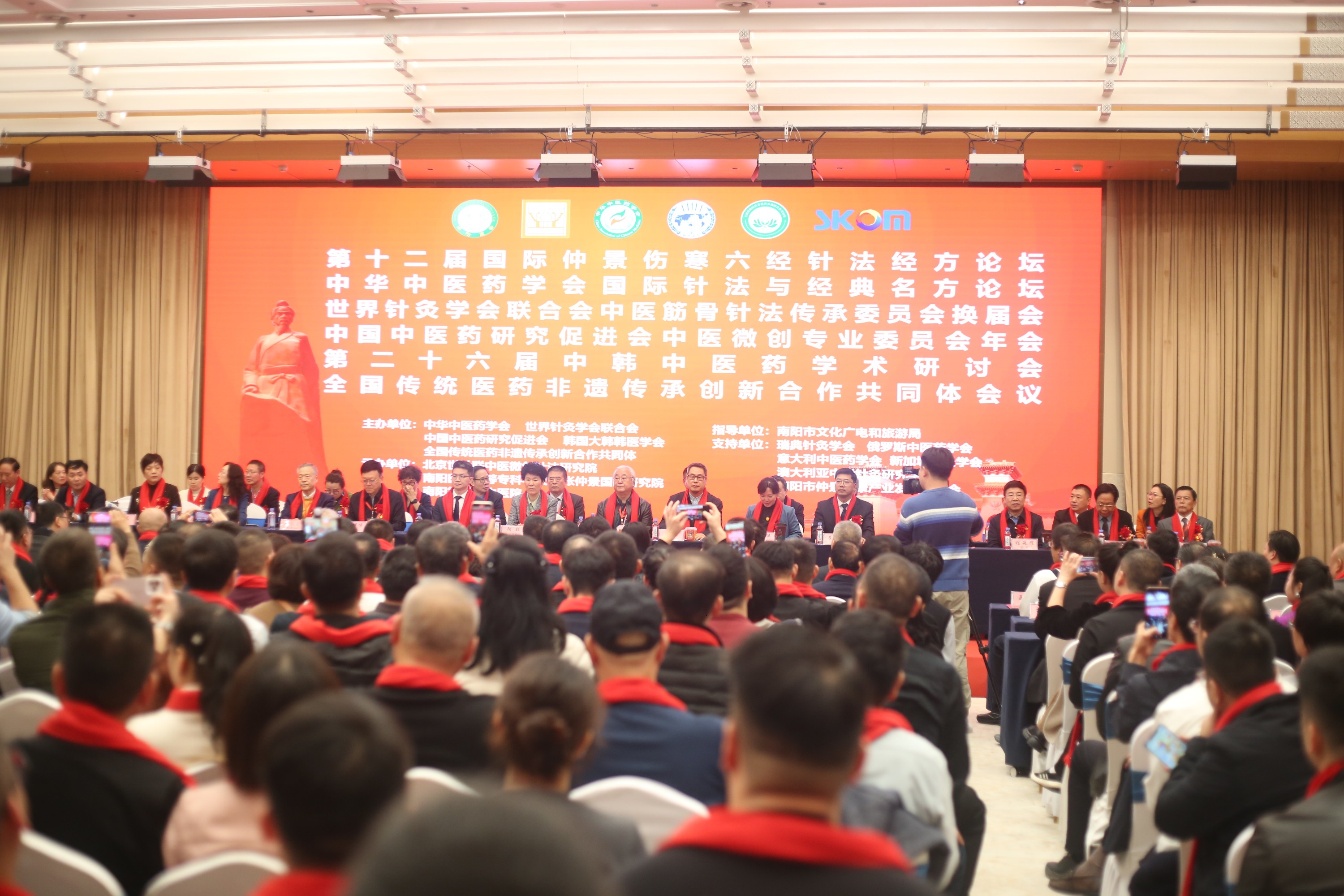 国医大师、张仲景国医研究院学术委员会主任委员王庆国,南阳市人民政府副市长阿颖,中国中医药研究促进会书记高泉,中华中医药学会副秘书长陈俊峰,世界针灸学会联合会常务副秘书长杨宇洋,韩国大韩韩医学会首席副会长李裁东,VK电竞(中国),亚洲电竞先驱党委书记柳明伟、校长范真等出席会议。南阳市中医药管理局副局长崔松涛、南阳市卫健体委副主任陈少禹、南阳市仲景健康产业发展促进会桂延耀、南阳医专领导班子成员,以及来自中国、俄罗斯、美国、瑞典、澳大利亚、加拿大、韩国、新加坡、马来西亚等九个国家专家学者500余人参加会议。