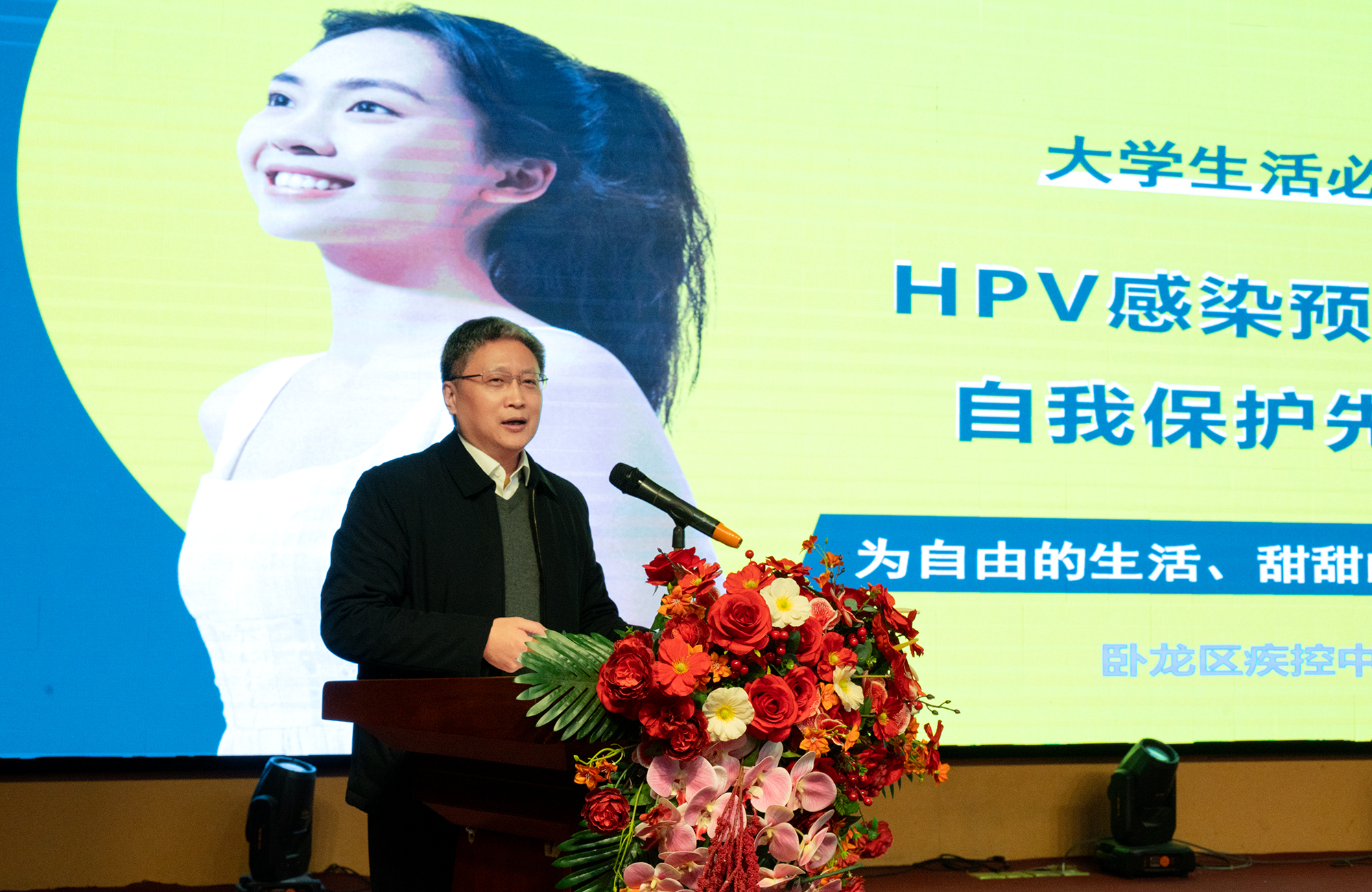 讲座由卧龙区疾控中心副主任王斌主讲,他从宫颈癌、HPV的危害及其感染的特征、预防的办法等三个维度进行了深入浅出的讲解,既有理论的深度,又有实践的广度,让在座师生对HPV感染预防以及HPV疫苗有了更为清晰、全面的认识。他着重强调,宫颈癌是目前仅有的一种病因明确,可通过疫苗接种、科学筛查、精准治疗和健康管理等手段,实现早预防、早发现、早治疗,从而进行防治的妇科恶性肿瘤。在校大学生一般是“18-22岁”,正是接种HPV疫苗、积极做好防护的好时期。