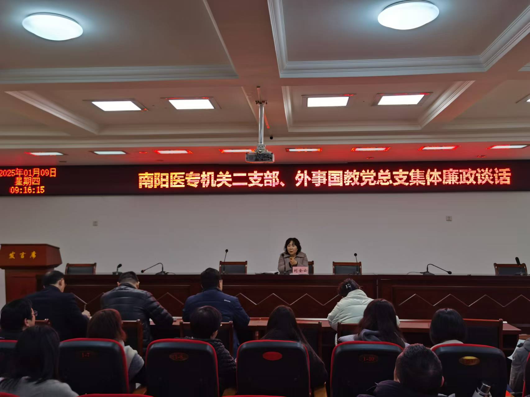 本网讯(文/校纪委 龚如东)1月9日上午,在仲景西区1号办公楼会议室,校党委委员、纪委书记刘金云对机关二支部、外事国教党总支全体党员干部开展集体廉政谈话。