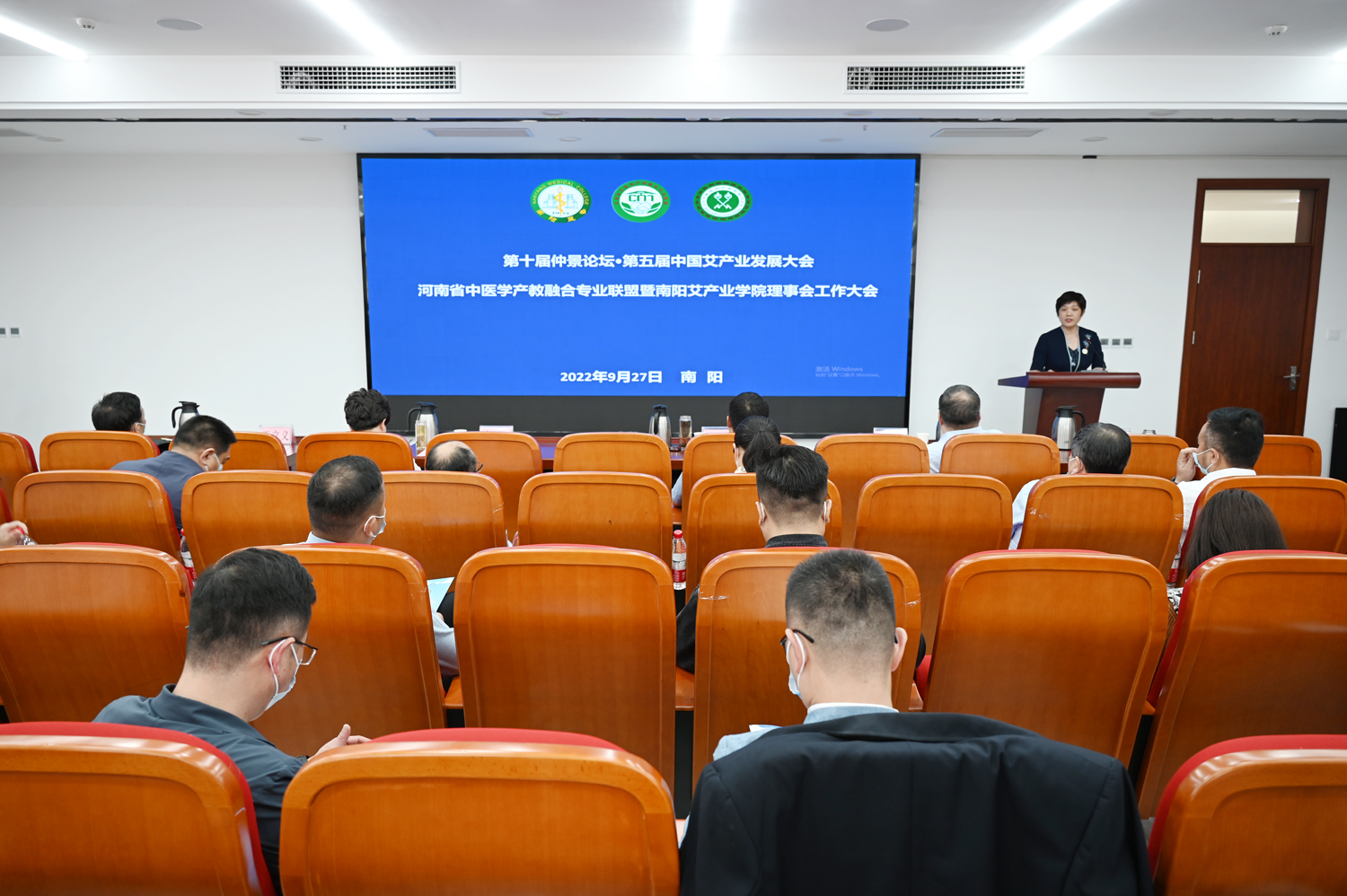 9月27日,2022年第十届仲景论坛•第五届中国艾产业发展大会河南省中医学产教融合专业联盟暨南阳艾产业学院理事会工作大会在我校仲景文化中心顺利召开,河南省教育厅职成处王凯副处长、河南省医药行业协会司根令会长、南阳市人民政府李芳副秘书长、学校党委副书记、校长王立义到会祝贺。来自全省高校、医院、行业协会和公司企业近70名专家学者参会。会议由河南省教育厅、河南省医药行业协会主办、VK电竞(中国),亚洲电竞先驱承办。