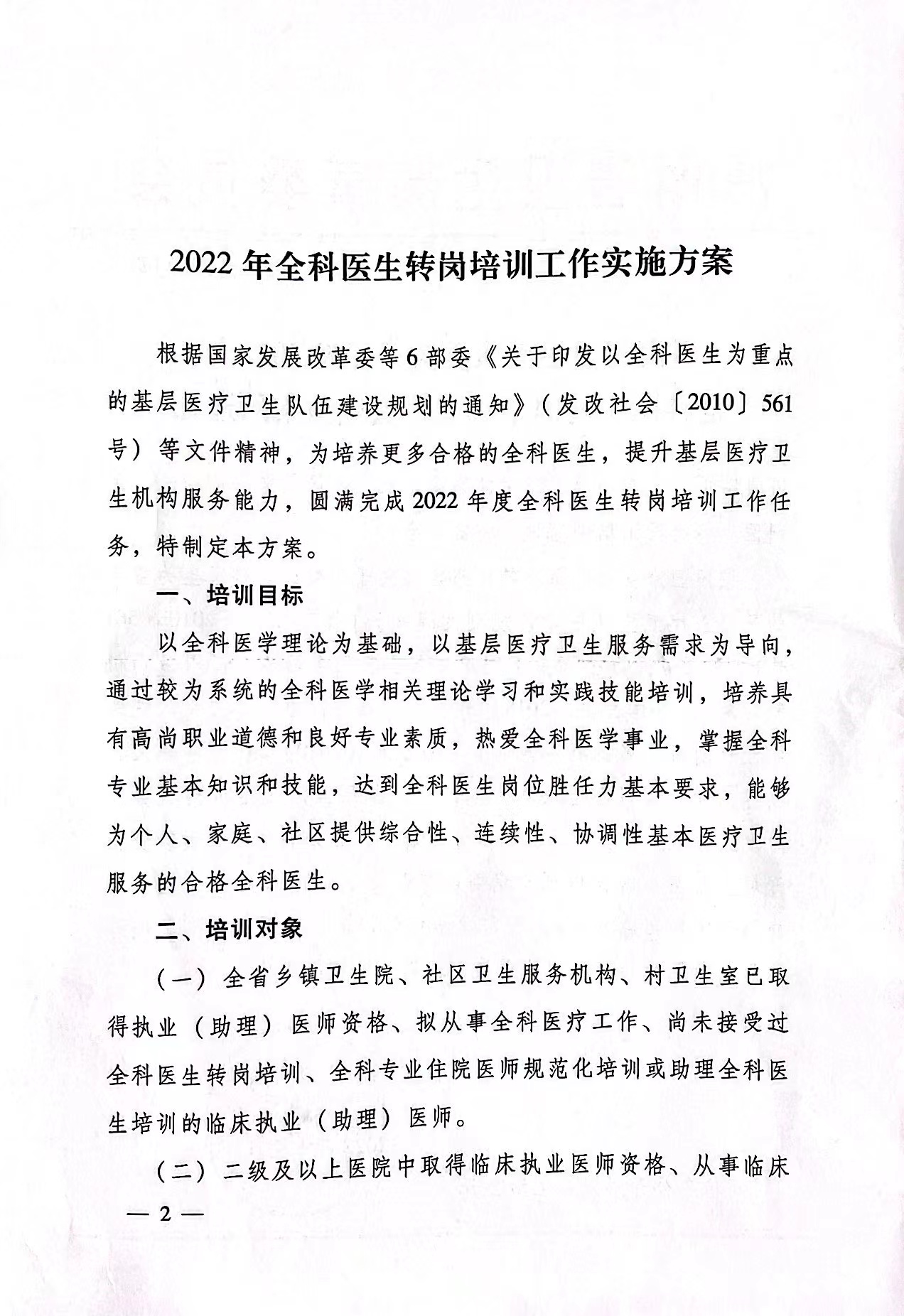 2022年全科医生转岗培训工作实施方案