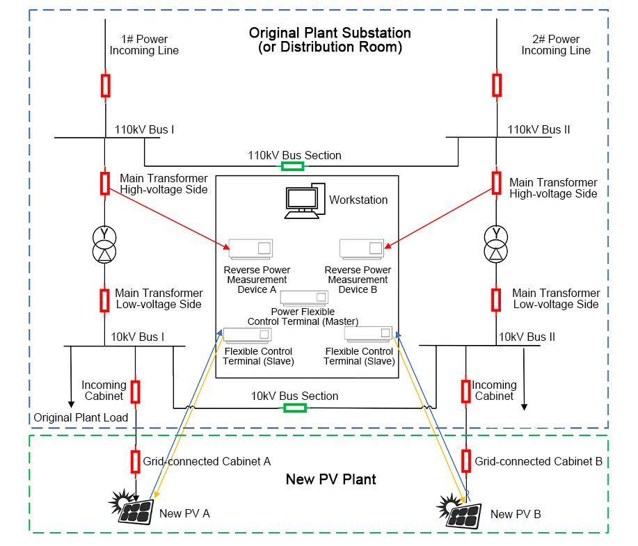 Suitable for 380V~10kV distributed generation renewable energy stations, providing millisecond-level flexible adjustment of inverters to ensure no reverse power flow and prevent surplus electricity from entering the grid, achieving "regulation instead of curtailment" to minimize energy loss.